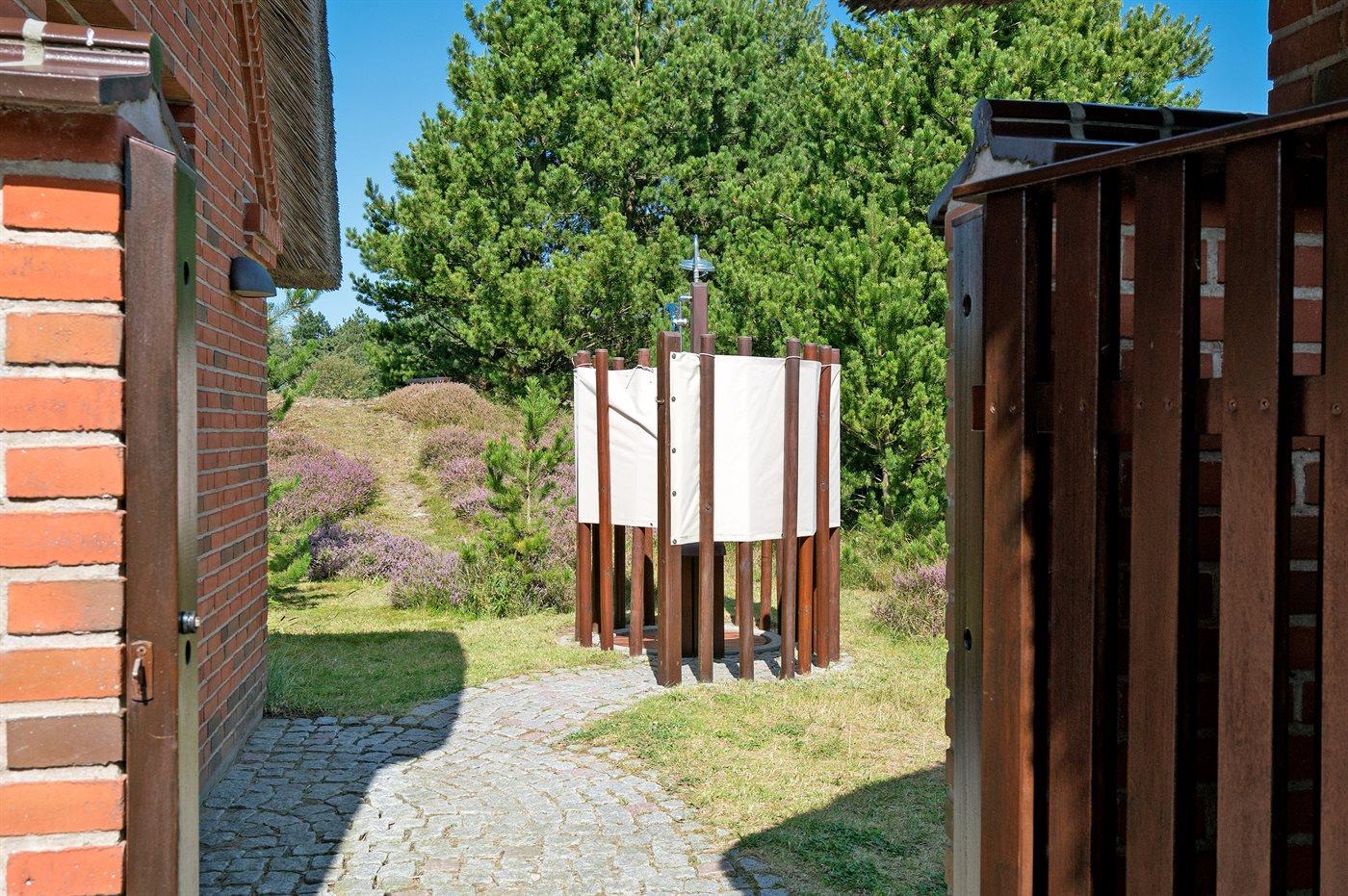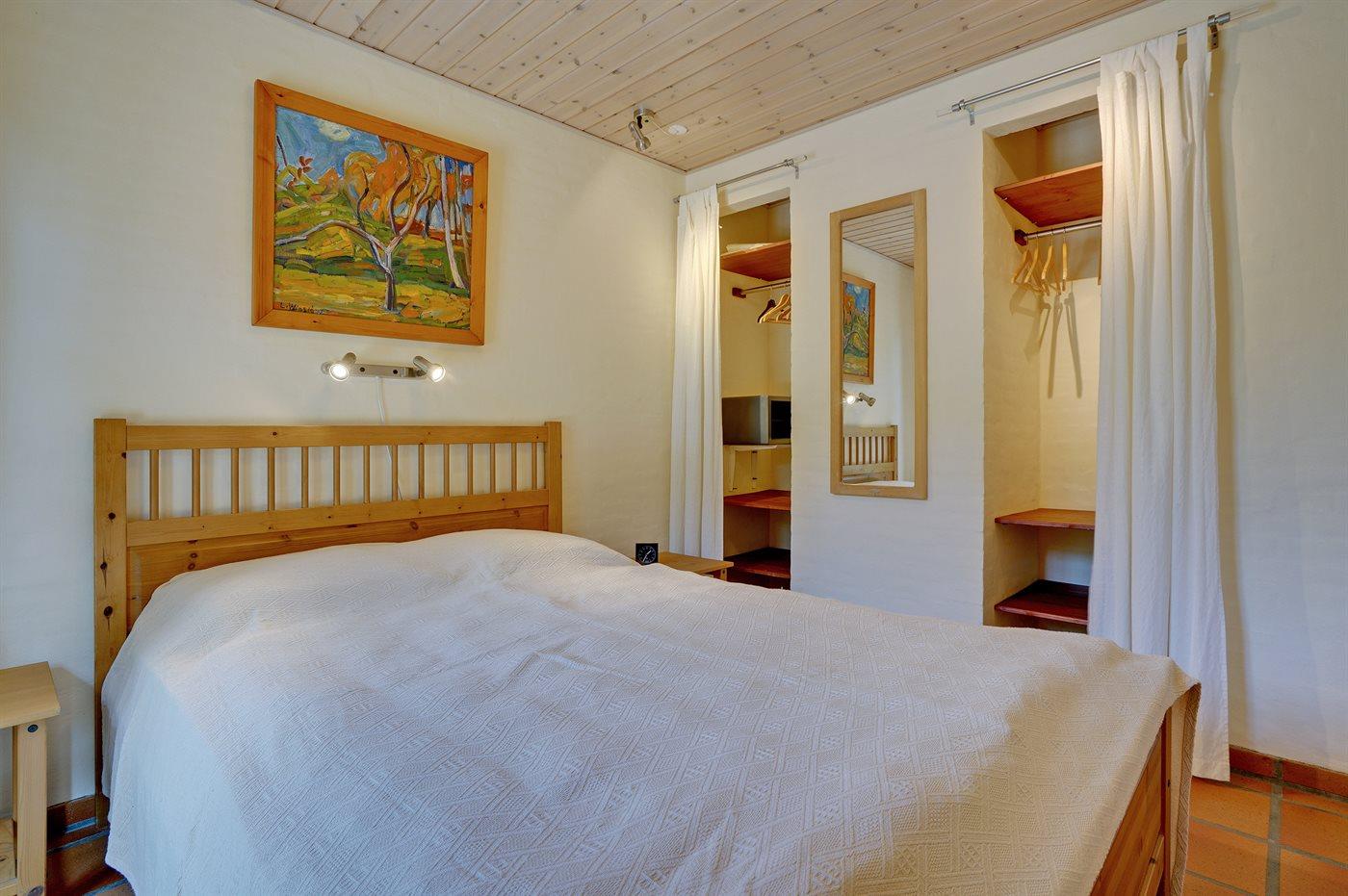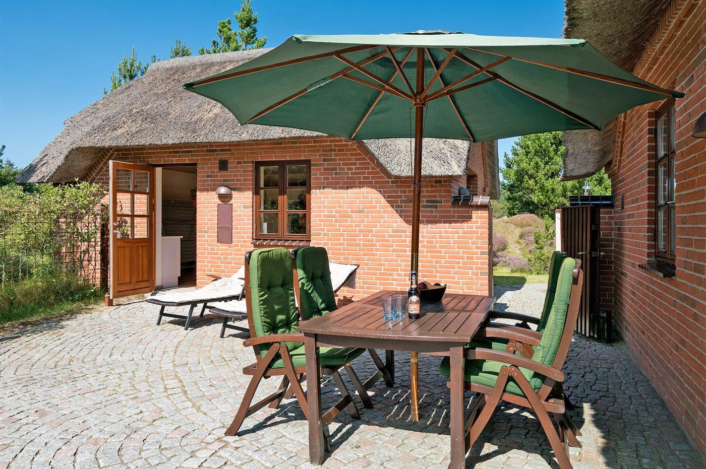 Virkelig lækkert sommerhus i sten med sauna, bygget i 2003, beliggende på en stor naturgrund i området Vesterhede, der er en del af de mindste sommerhusområder på øen. Bemærk: Reducerede varmeomkostninger, da huset opvarmes vha. jordvarme. Til huset hører 3 åbne terrasser med diverse havemøbler. Indvendigt er der klinkegulv med gulvvarme i alle rum. Væggene er malet i lyse farver, og lofterne er beklædt med lyst træ. Skønt, lyst badeværelse med bruseniche samt direkte adgang til husets sauna. Bryggers med vaskemaskine og tørretumbler. Køkkenet, som er kombineret med stuen, er udstyret med bl.a. fryser, mikrobølgeovn og opvaskemaskine. Den dejlige opholdsstue er udstyret med bl.a. brændeovn, TV med parabolantenne, DVD-afspiller samt stereoanlæg med CD-afspiller. Desuden gratis, trådløs internetforbindelse til rådighed (computer skal medbringes). Sovepladserne er fordelt på 2 værelser; 1 med dobbeltseng og 1 med køjeseng. Til de små feriegæster er der barneseng, høj barnestol, sandkasse og gynge til rådighed. Hobbyrum med bordtennis.