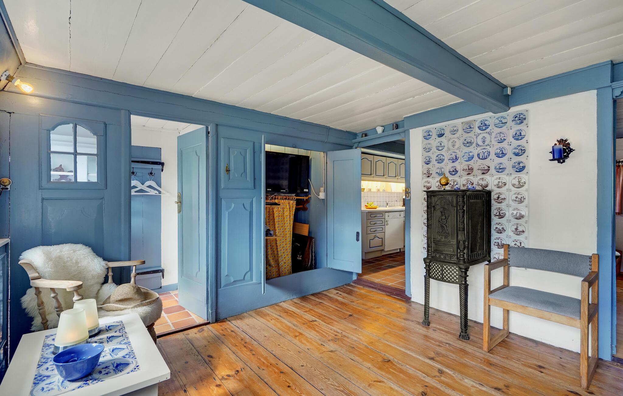 I rolige omgivelser, tæt på marker og skove, finder I dette smukke, bevaringsværdige hus med stråtag. Huset udstråler hygge og en god atmosfære og er smukt indrettet med træpaneler og mange spændende historiske detaljer. Tilbring en dejlig tid her med familien og glem hverdagens bekymringer. Her kan I koncentrere jer om familien, landskabet og havet. Husets rustikke og dekorative elementer, som f.eks. den åbne pejs i køkkenet og de mange smukke detaljer, giver huset en særlig charme.