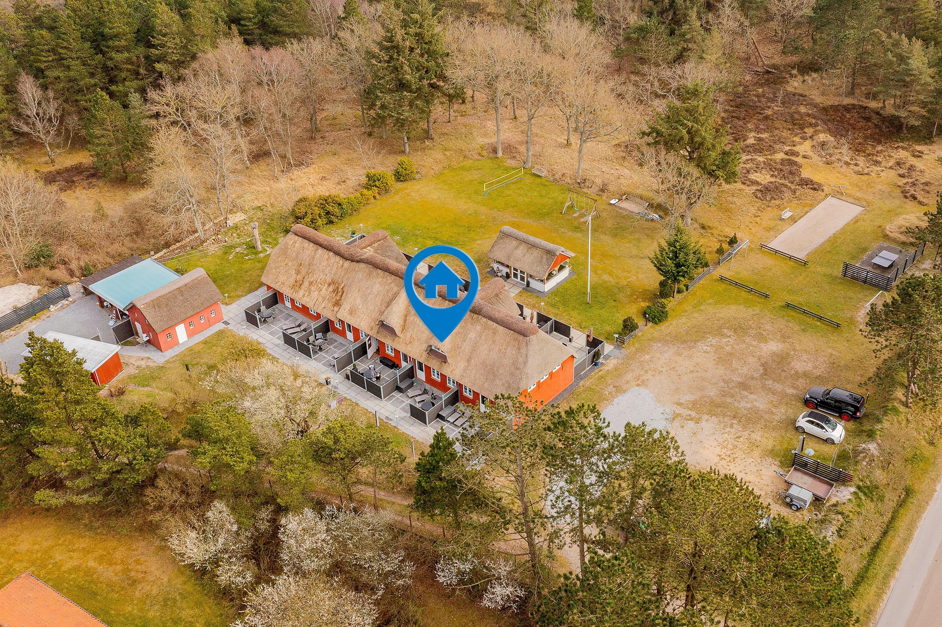 Ferielejligheden ligger på en stor naturgrund, som deles med de 3 andre ferielejligheder i Rømøhuset. De andre ferielejligheder kan I også leje, så flere fra familien eller vennerne kan komme med på ferien. Grunden består af græsplæne samt klitter og byder på et bredt udvalg af sjove aktiviteter for hele familien. Måske vil I afholde en spændende turnering i bordtennis, petanque, tennis eller volleyball?