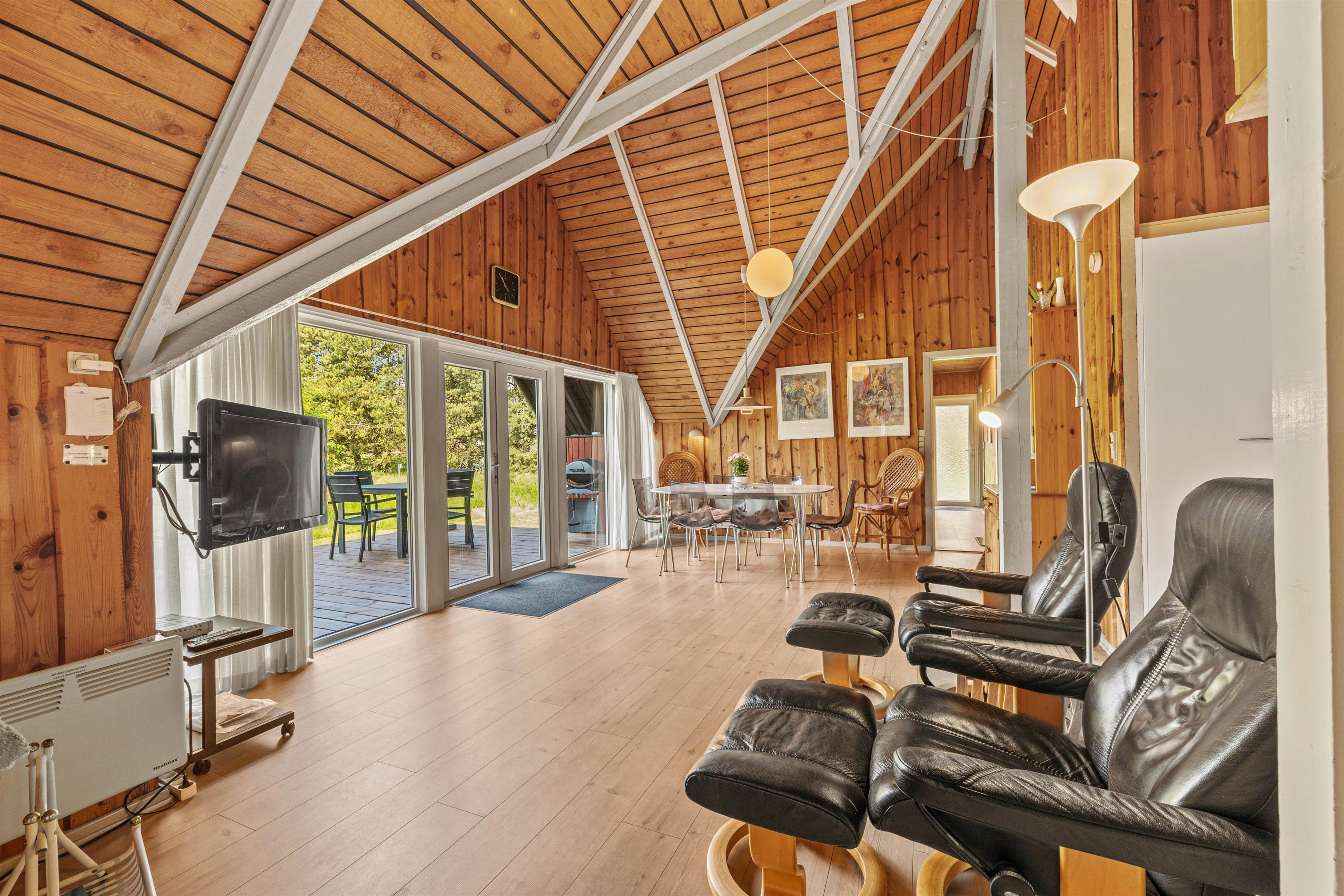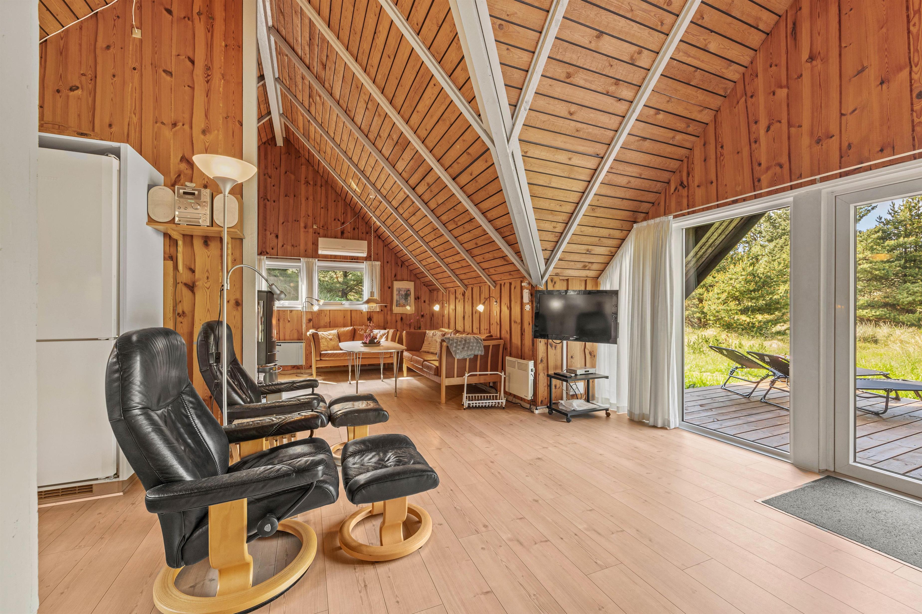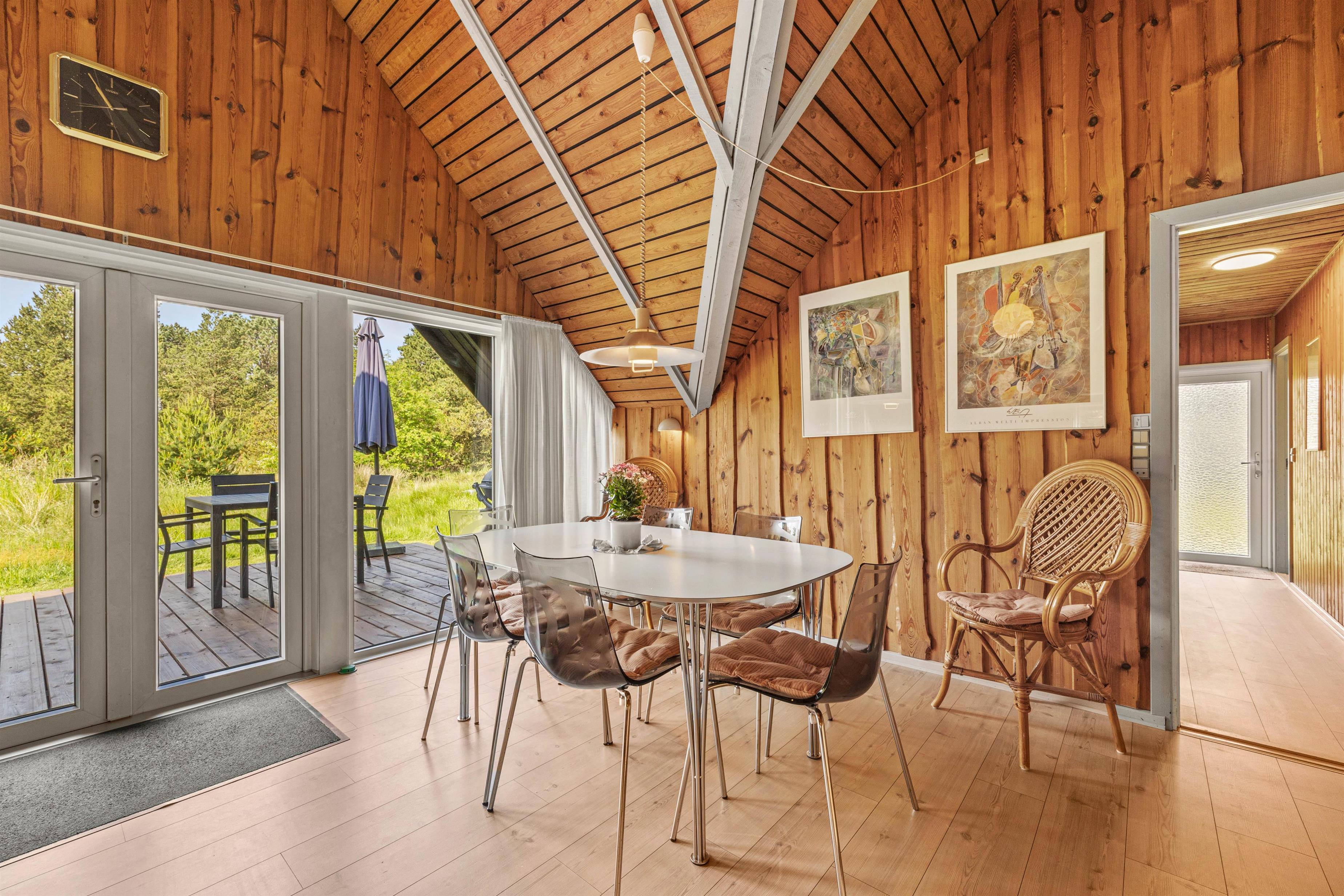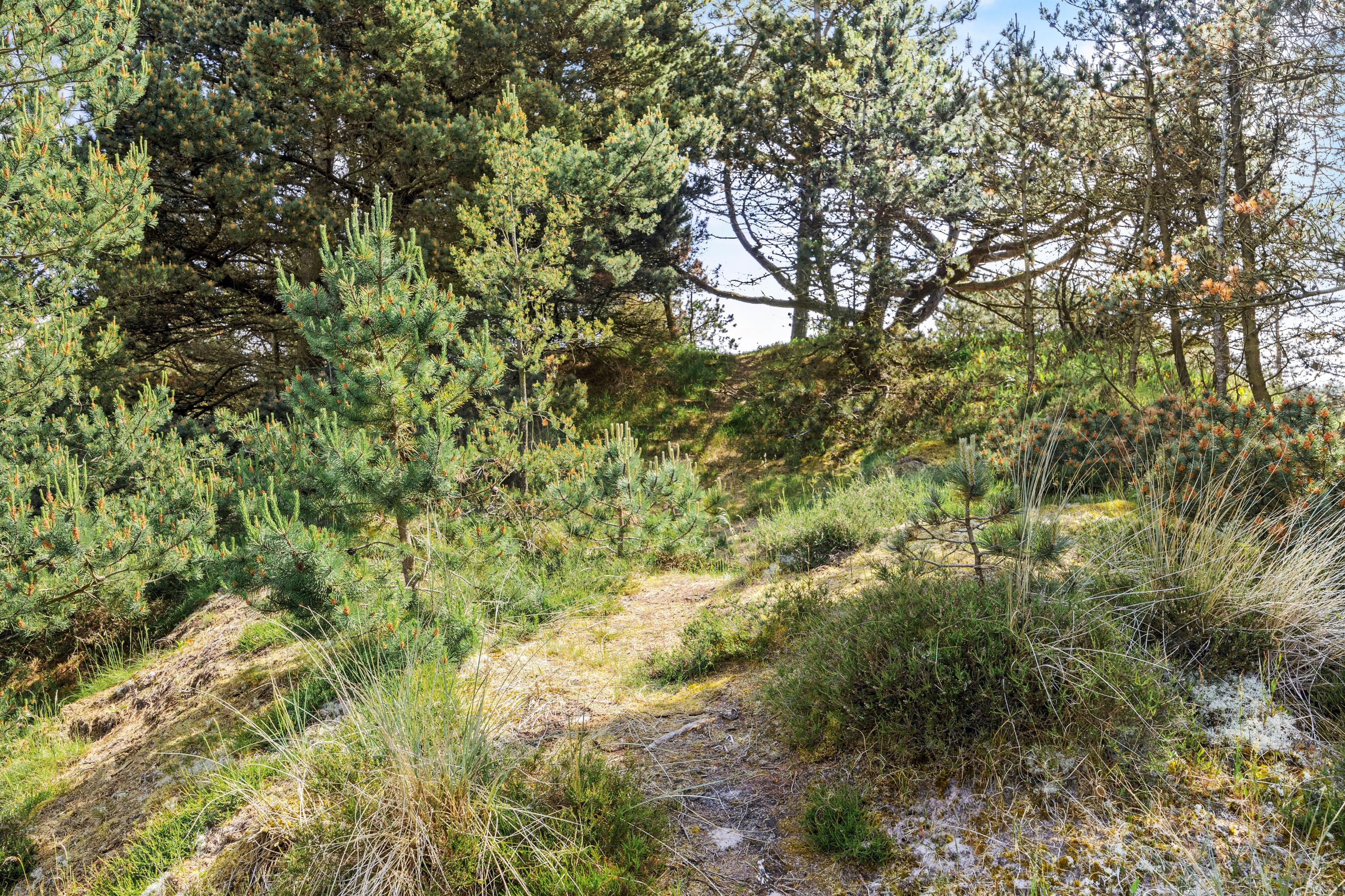 Sommerhuset er beliggende på en smuk naturgrund, hvor de omkringliggende klitter skærmer for den værste blæst. Mod sydvest er en dejlig træterrasse, der er delvist overdækket – her venter havemøblerne blot på jer! Nyd en god bog, solens varme og saml familien til en skøn grillaften. Til formålet har I en gasgrill, så I hurtigt kan få tændt op, mens børnene leger på den grønne plæne. Til familiens mindste finder I også en sandkasse samt gynge.