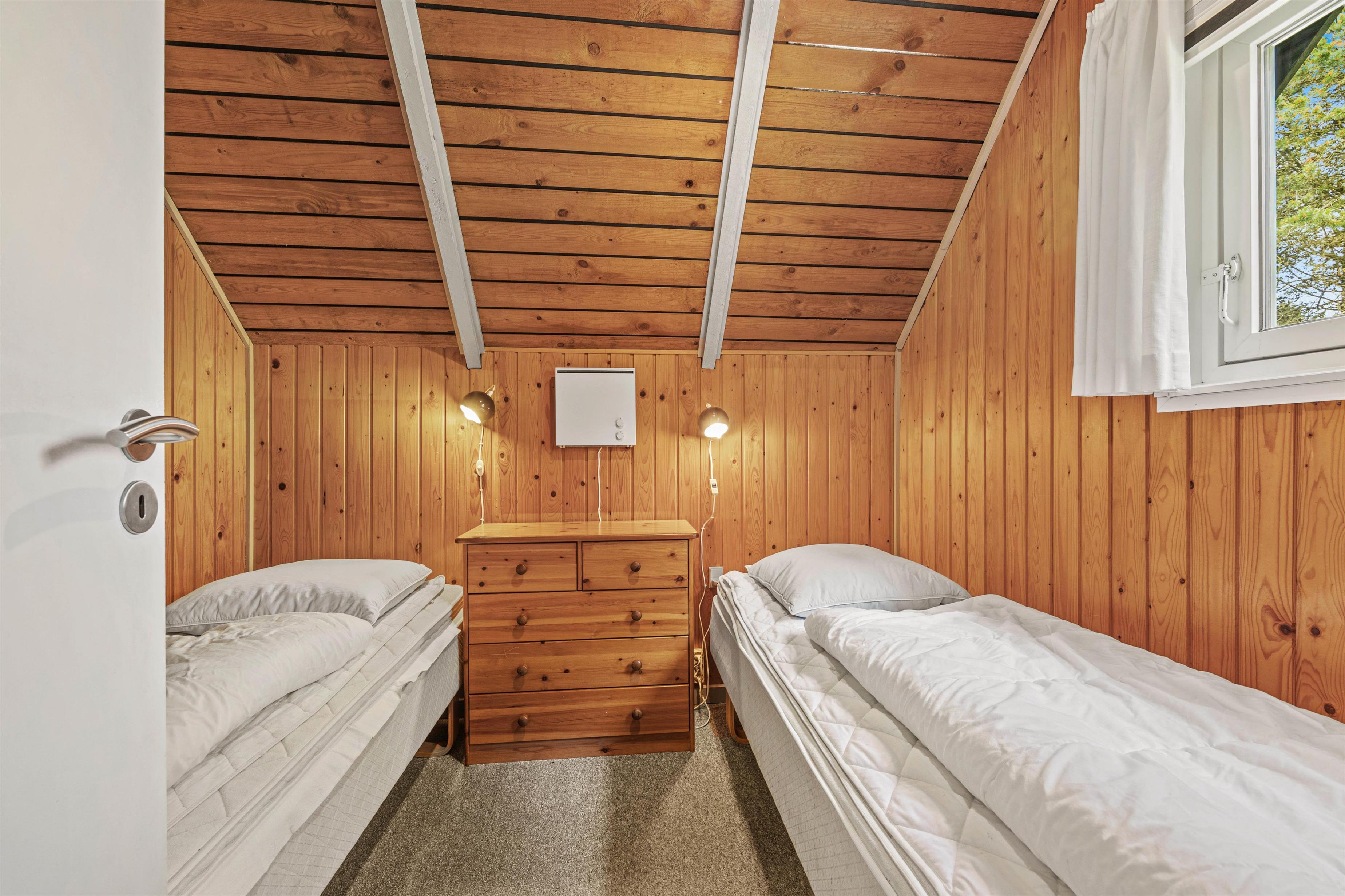Udover sommerhusets hjerterum, er her 3 gode soveværelser – 2 er udstyret med en dobbeltseng, mens det sidste har 2 enkeltsenge. På badeværelset er der installeret gulvvarme samt adgang til saunaen. Her kan I få varmen – perfekt efter en lang gåtur ved stranden, hvor i er blevet blæst godt igennem.