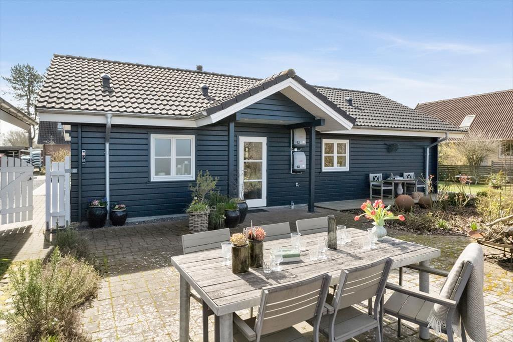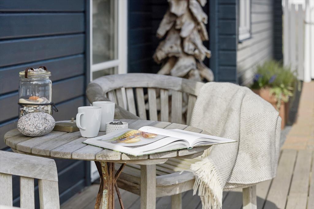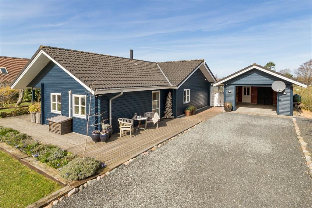 Fra stuen er der direkte udgang til den overdækkede vestvendte terrasse, så her kan I sidde i læ og nyde jeres måltider. På modsatte side af huset er der endnu en dejlig terrasse. Dette er et ideelt sted at sætte sig, når solen skinner over Samsø. Gå på opdagelse i haven og nyd de grønne omgivelser og de fine krukker og bede med blomster. Ved huset er også en god indkørsel og en garage, så praktikken er helt på plads, når I skal holde ferie her.
