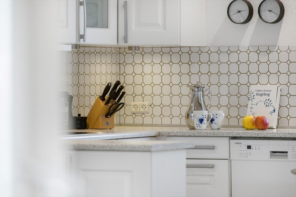 Huset har et godt køkken, hvor der er alle de nødvendige faciliteter, I skal bruge på ferien. Ved køkkenet er der også en spisebordsplads, så her er der plads til, at I alle kan sætte jer omkring bordet og spise morgenmaden sammen. Fra stuen, der er i forbindelse med køkkenet, er der også gode muligheder for at sætte jer ud på husets terrasser, og nyde morgenkaffen eller et godt måltid.