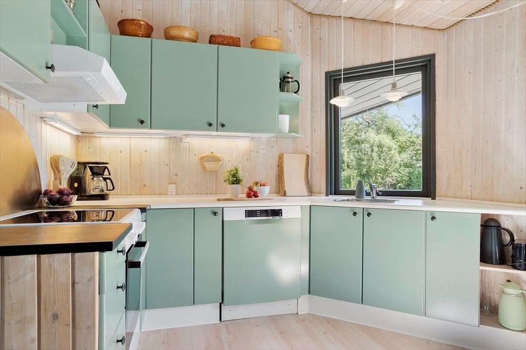 Sommerhusets helt centrale rum er det åbne køkkenalrum og stuen. Her bliver du med det samme betaget af den flotte udsigt til natur og Samsøs vestkyst. Det er et perfekt samlingsrum, hvor naturen føles helt tæt på.