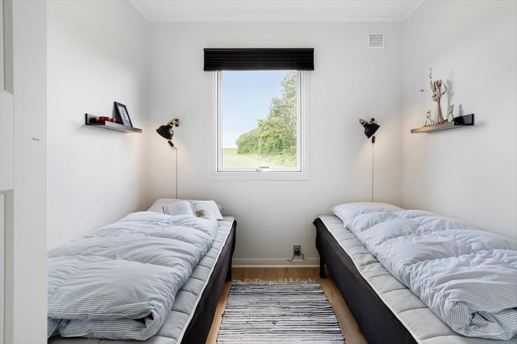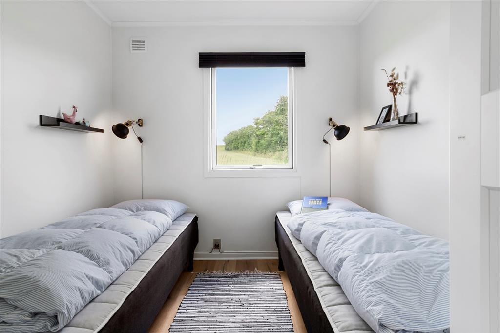 Sommerhuset har to soveværelser med to gode enkeltmandssenge i hvert rum. I hvert værelse er også et skab og vindue ud mod de grønne omgivelser. Her kan I med sikkerhed få en god nat søvn.