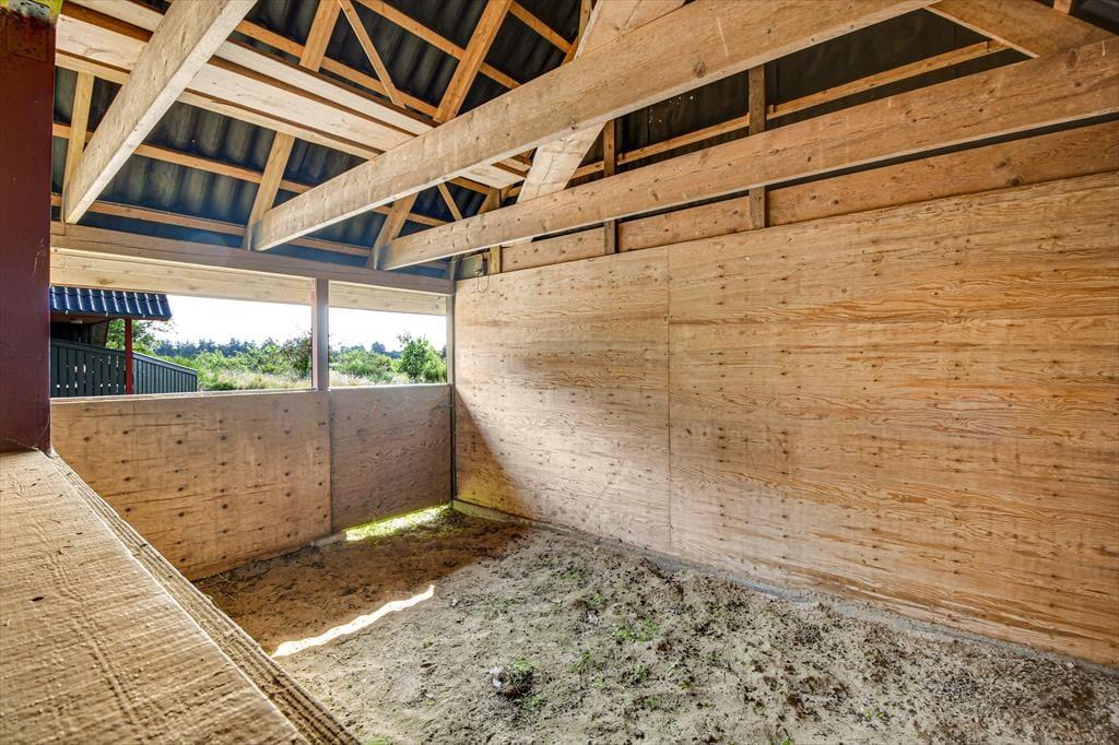 Naturgrunden fungerer som en dejlig ferieresidens for heste eller ponyer – og ekstra pris for 1 medbragt hest er DKK 500, mens 2 heste kan medbringes for DKK 900. I garagen findes en boks