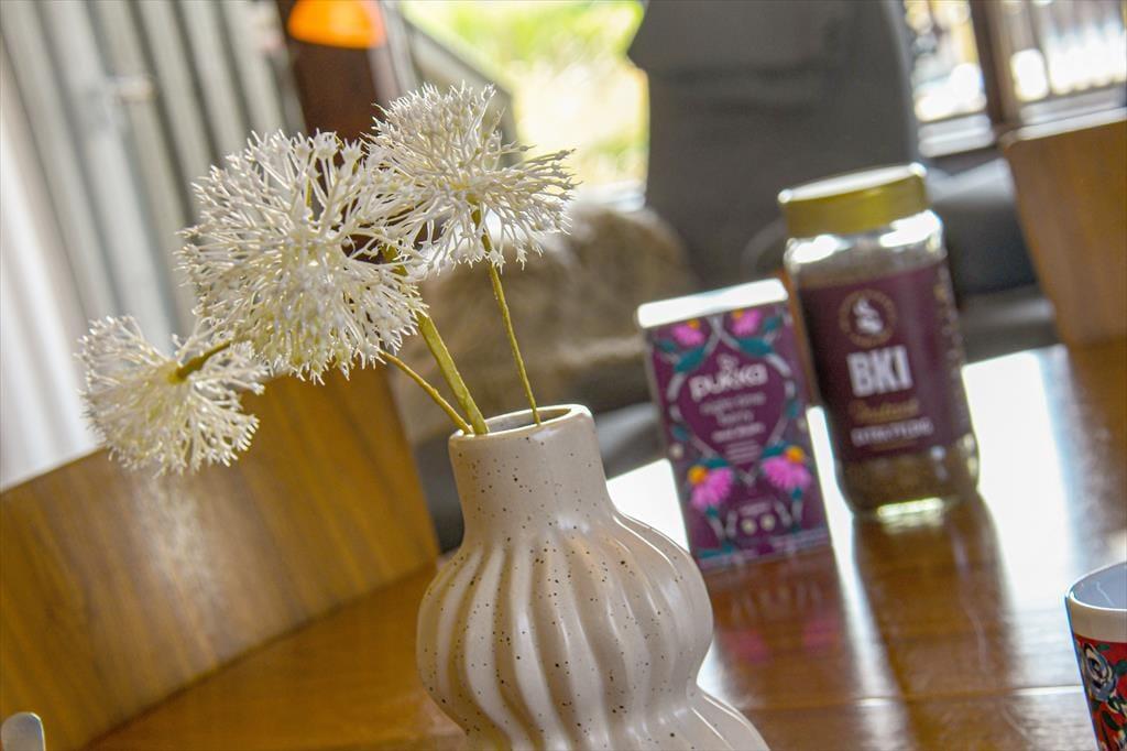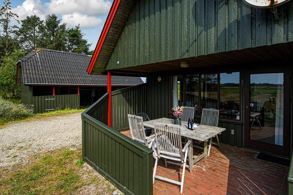 Solskinstimerne kan oplagt udspille sig på den delvist overdækkede terrasse, der ligger syd for sommerhuset, lige i forlængelse af stuen. En varm kop kaffe eller en kølig forfriskning smager altså bare bedre, når man sidder i et smukt landskab som dette, og hvis du drømmer om at tilberede alle feriens aftenmåltider i det fri, kan du tage grillen i brug og dække op ved havebordet. Grunden er med sine 3600 m2 meget stor, og der er god afstand til naboerne – og med både carport og gårdsplads er der masser af kvadratmeter til at parkere en eller flere biler.