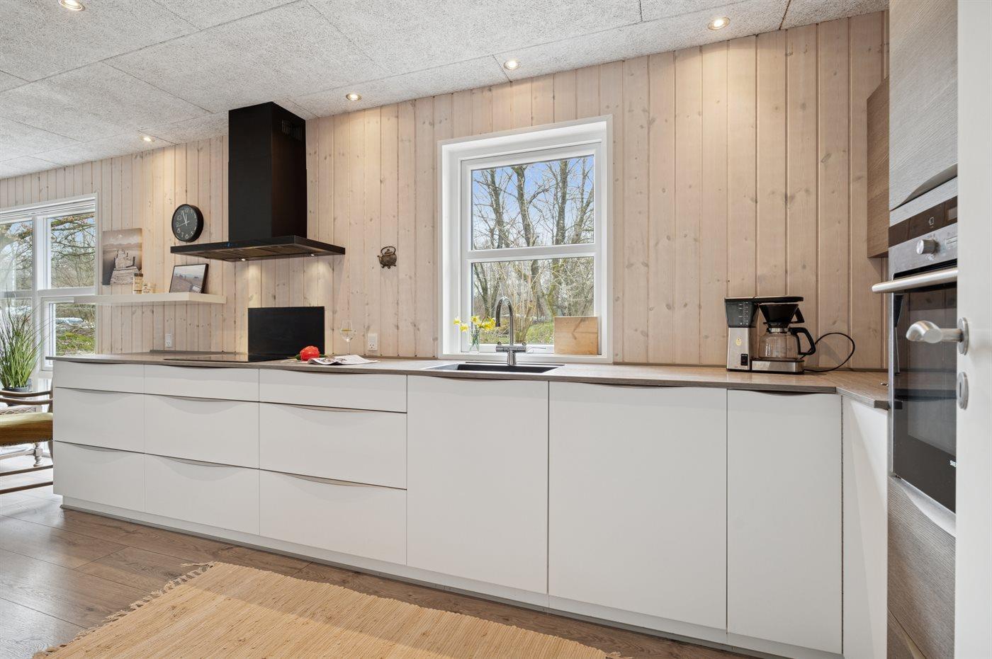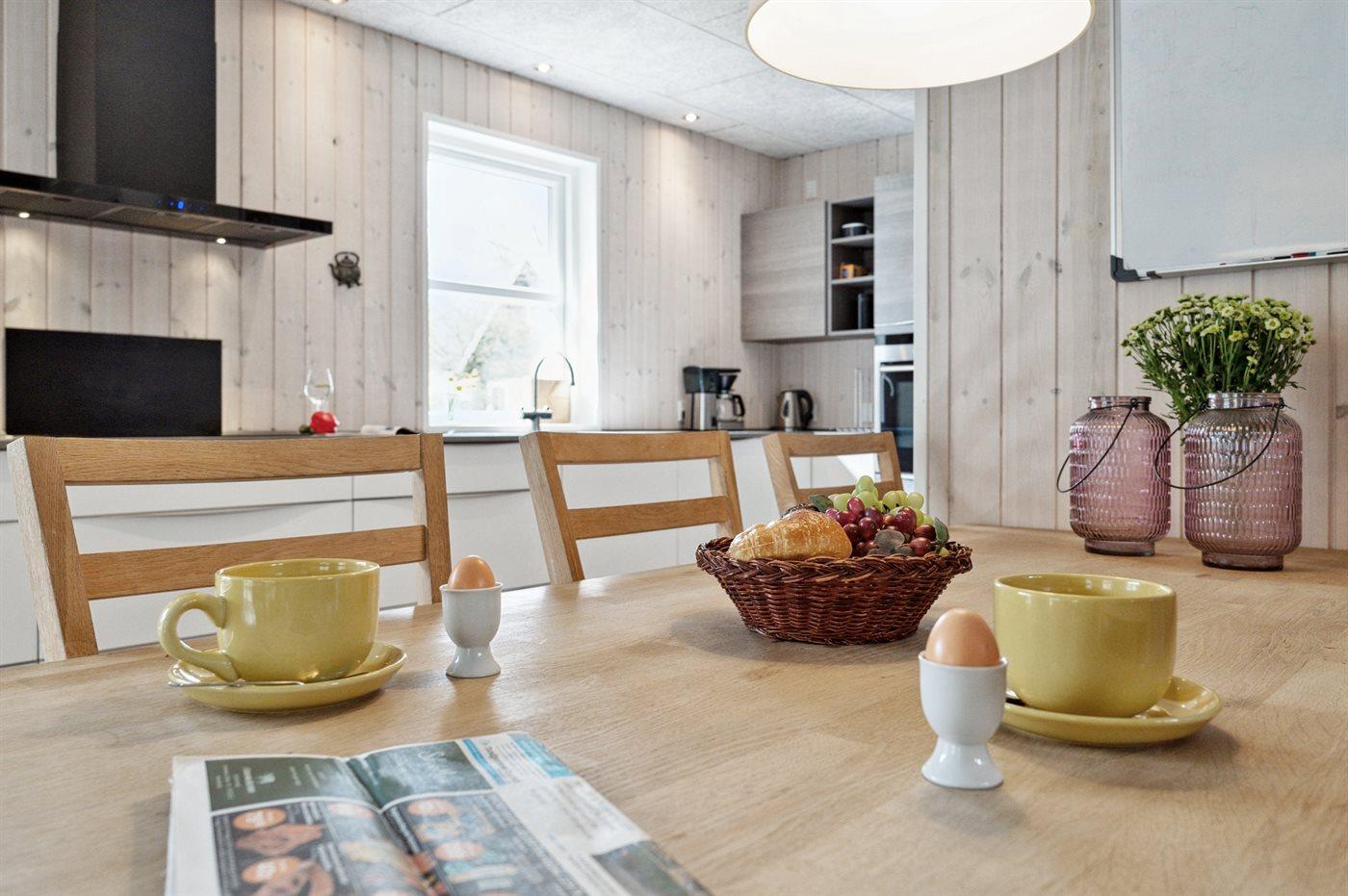 Køkkenet er udstyret med 1 køleskab. Der er 4 induktionskogeplader, varmluftovn, mikrobølgeovn samt opvaskemaskine.