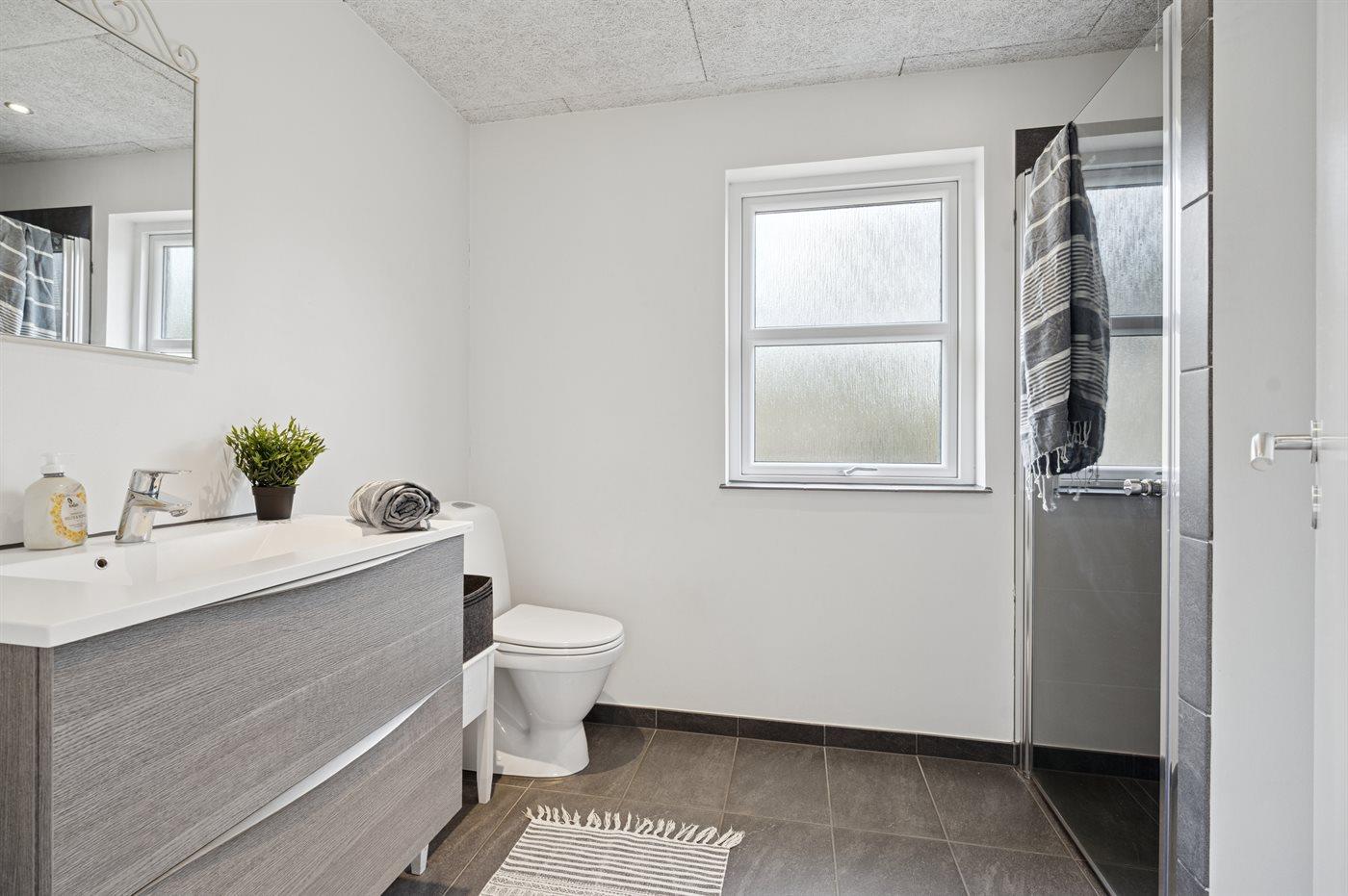 Der er 1 badeværelse med bruseniche og 1 toilet.. Der er gulvvarme på 1 badeværelse.