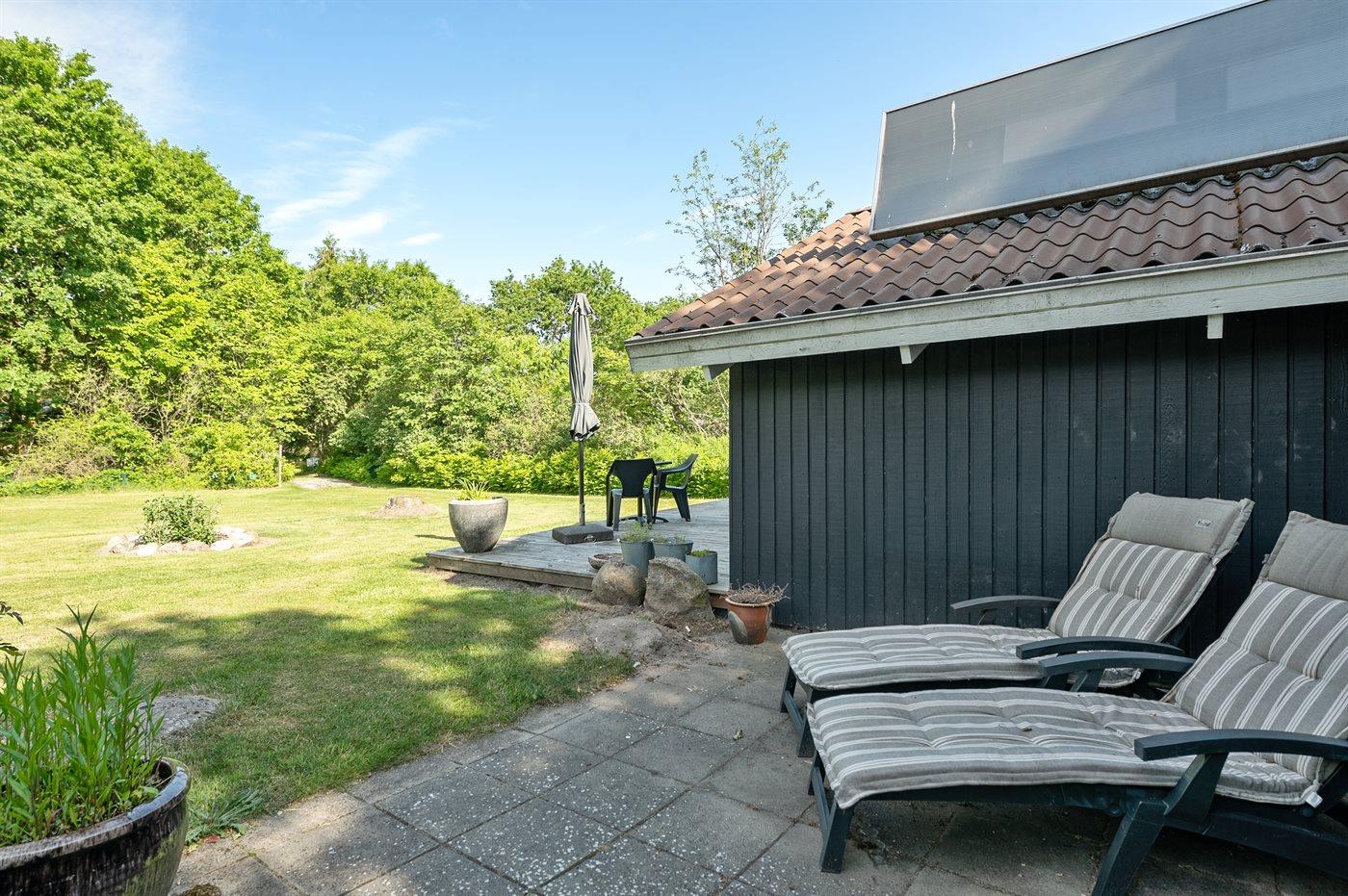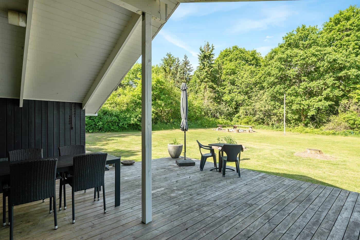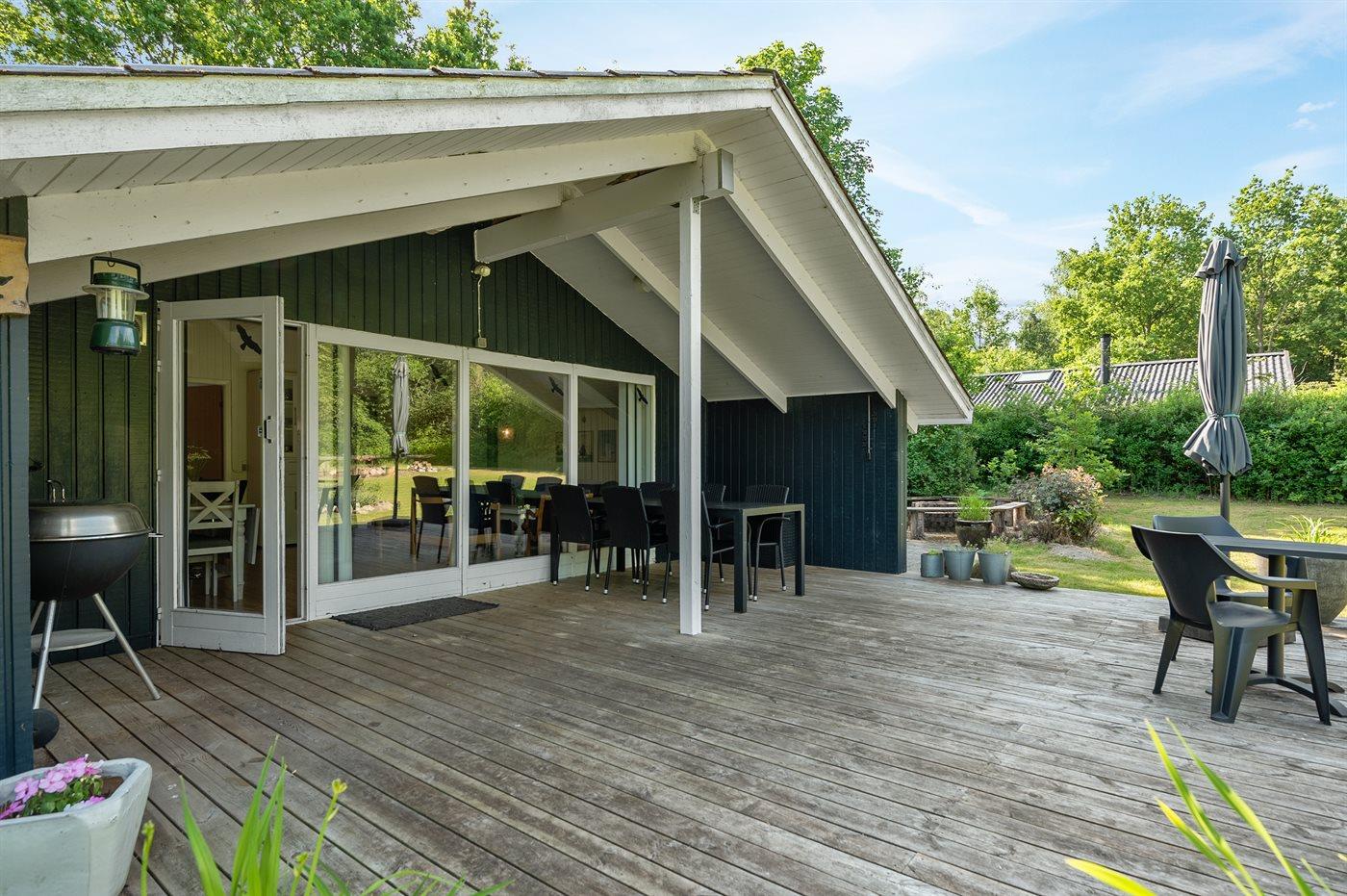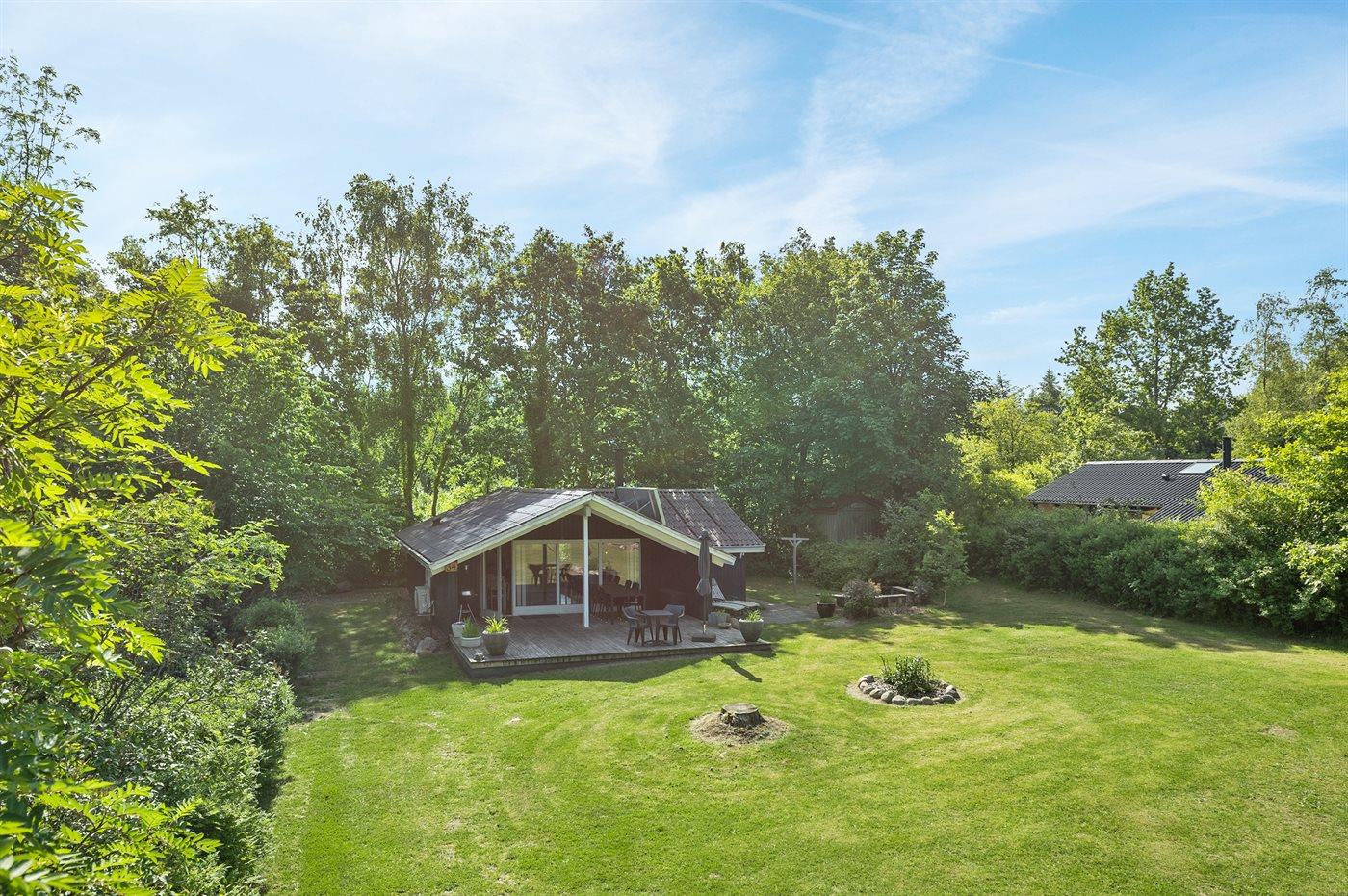 Energivenligt sommerhus på lukket grund nær Rørbæk Sø, med legeplads, bålplads og moderne faciliteter.