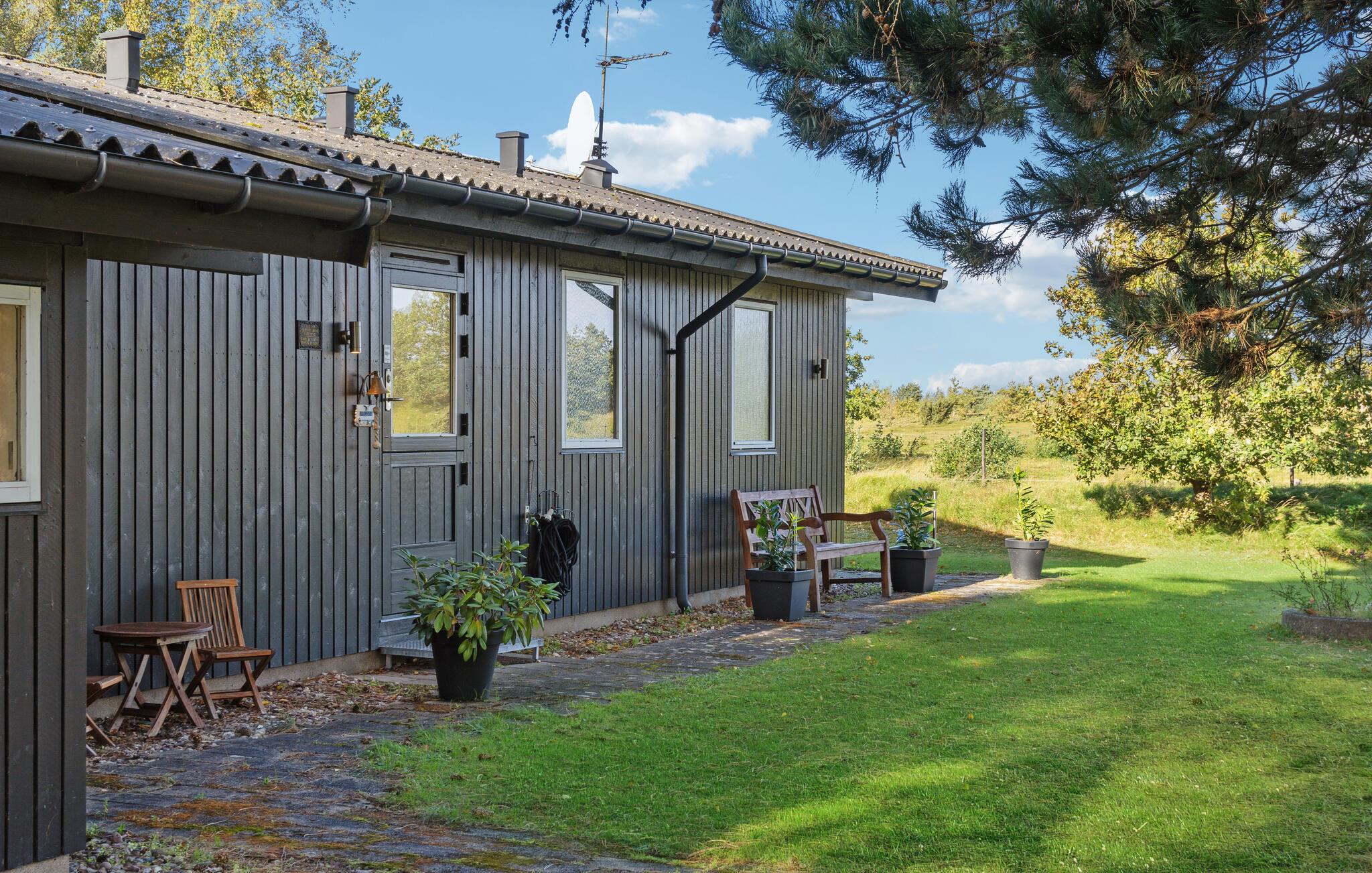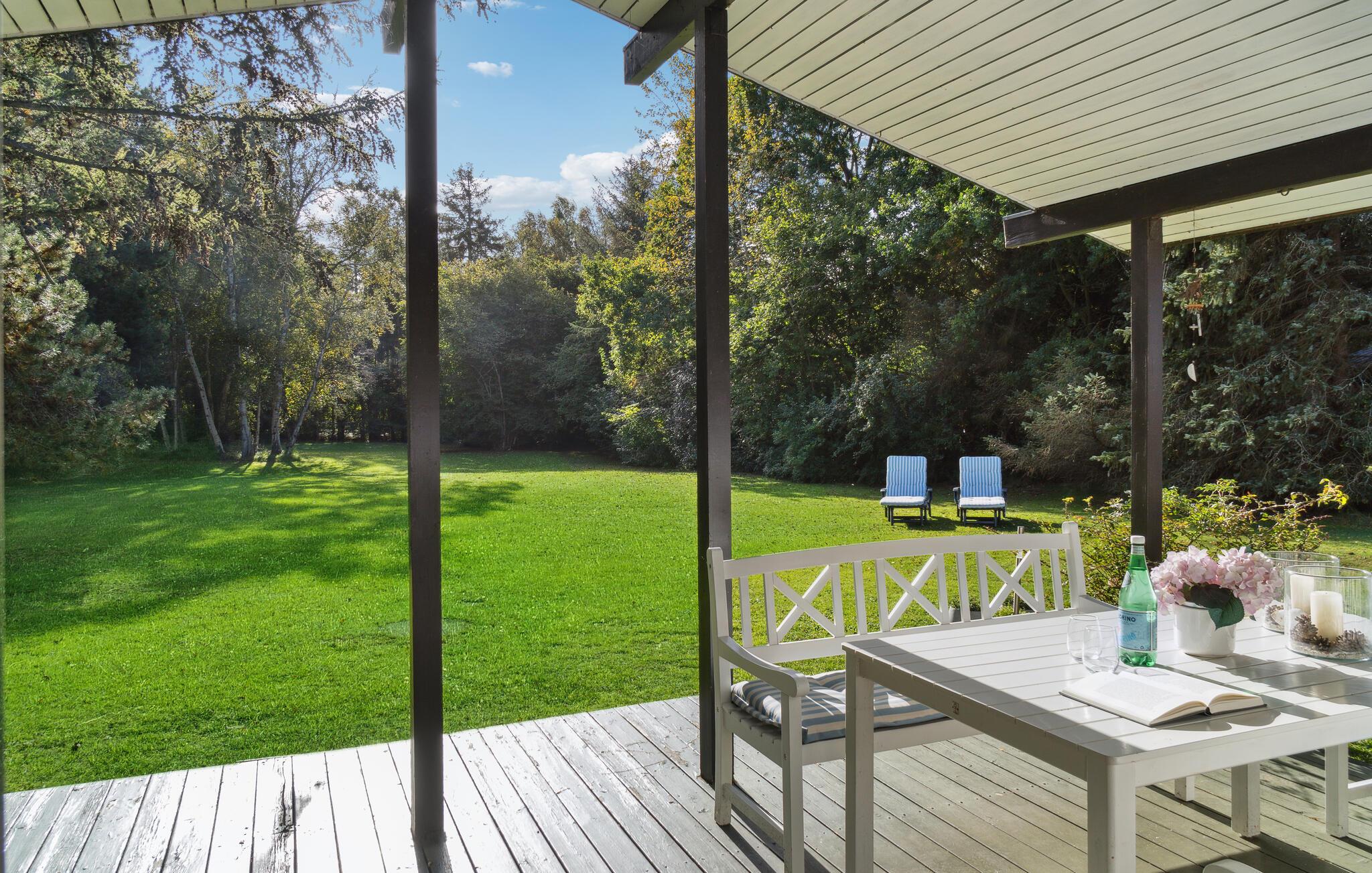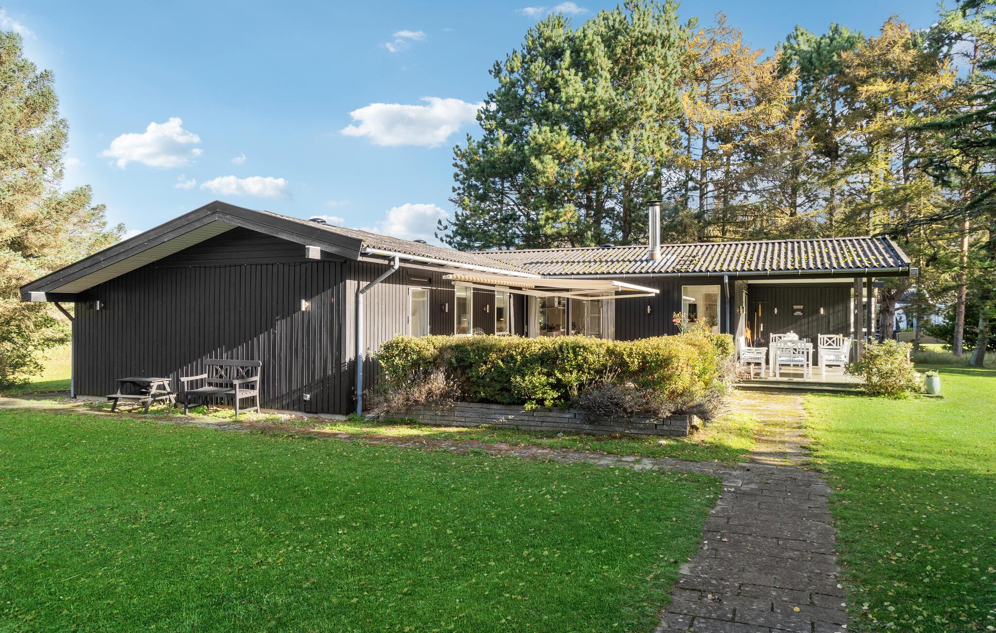 Nyd en dejlig ferie i et stort træhus tæt på Vesterlyng badestrand med have og smuk natur omkring.