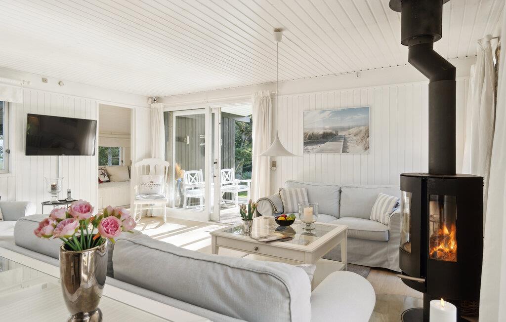 Velkommen til dette skønne træhus, som byder jer velkommen med et smagfuldt samspil af lyse farver og kærligt indrettede rum. Her kan I nyde jeres familietid og lægge den hektiske hverdag bag jer. Det åbne opholdsrum forbinder afslapning i sofaerne, fælles madlavning i det åbne køkken og familietid med lækker mad og leg ved spisebordet. Om morgenen kan I vælge jeres yndlingsterrasse og nyde en kop te eller kaffe udenfor. I mellemtiden kan jeres børn allerede tumle rundt i haven og gynge.