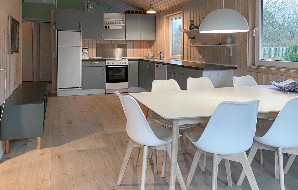 Dette hus er en skøn base til en afslappende pause fra hverdagen. Fra den komfortable sofa kan I nyde en smuk udsigt til husets grønne rammer gennem de store vinduer. Tilbring afslappende timer med at snakke, læse eller nyde en kop kaffe eller lav lækre måltider til hele familien i det moderne køkken.
