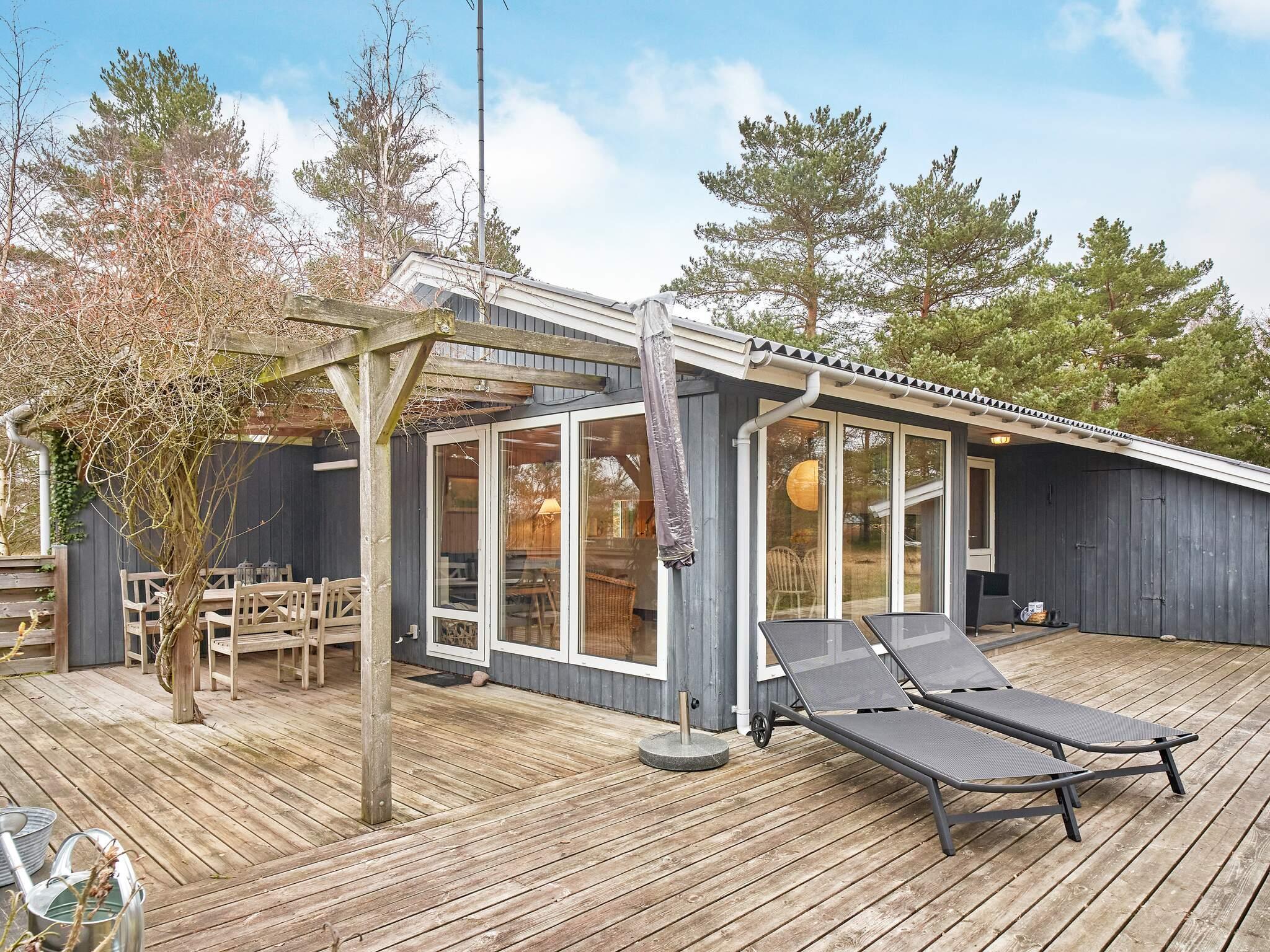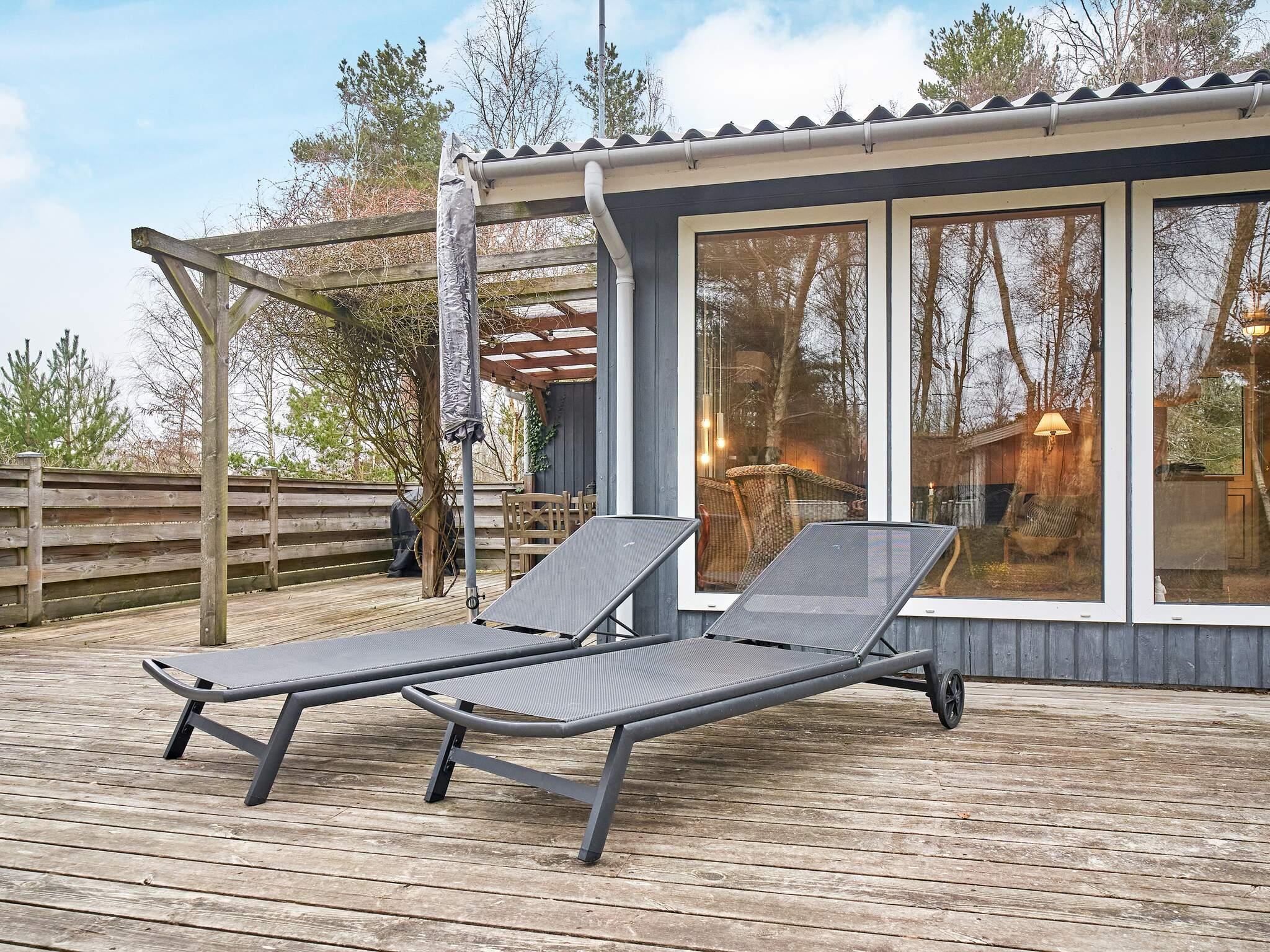 Gå direkte fra stuen ud på den store sydvendte terrasse, som er delvist overdækket for komfort i al slags vejr. Her finder du kvalitetsudendørsmøbler, liggestole og en grill – ideelt til lange sommeraftener. Bemærk, at huset ikke udlejes til ungdomsgrupper.