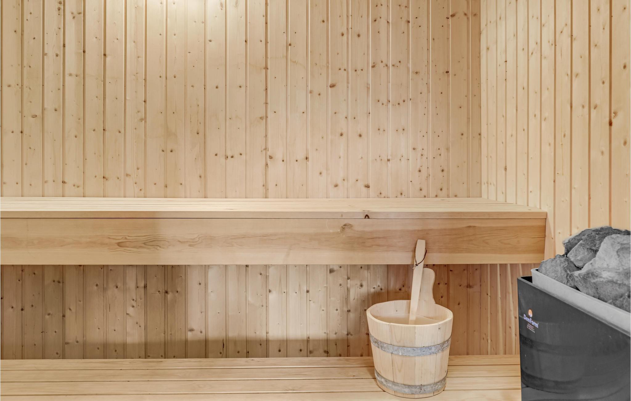 Velindrettet feriehus i træ med sauna, spabad og terrasse nær Bornholms skønne natur og strand.