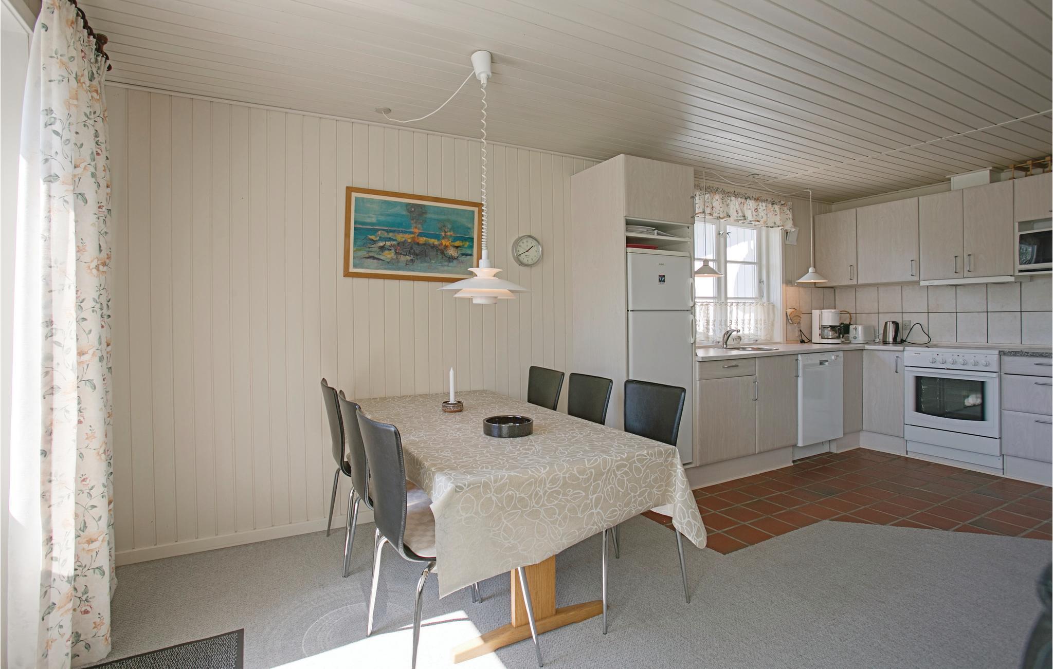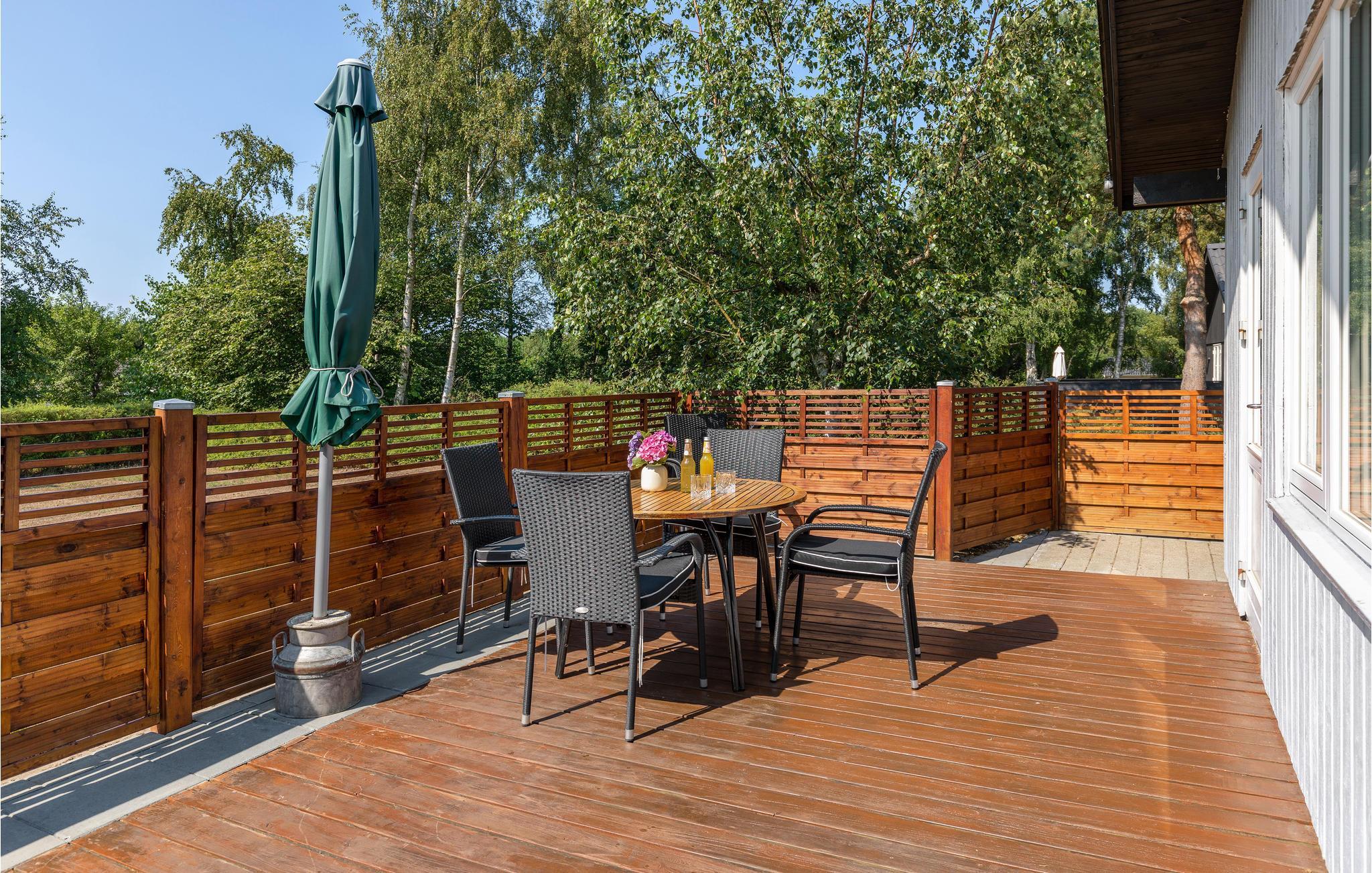 Velholdt og rummeligt kvalitetssommerhus med pæn og lys møblering. Huset ligger i det attraktive Sømarken og nær god sandstrand. Dejlig terrasse og velholdt grund med stor have og store træer. Komfortable møbler og et funktionelt køkken med el-komfur, opvaskemaskine, køle-/fryseskab, og mikrobølgeovn. Huset er helårsisoleret med elvarme, men har også en brændeovn i stuen, hvor I kan samles om aftenen og nyde den behagelige varme fra den knitrende ild.