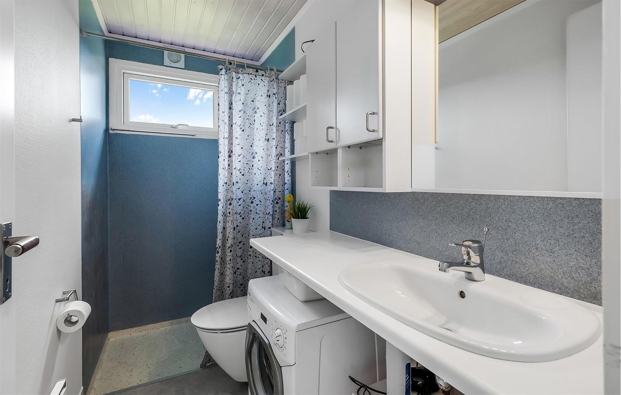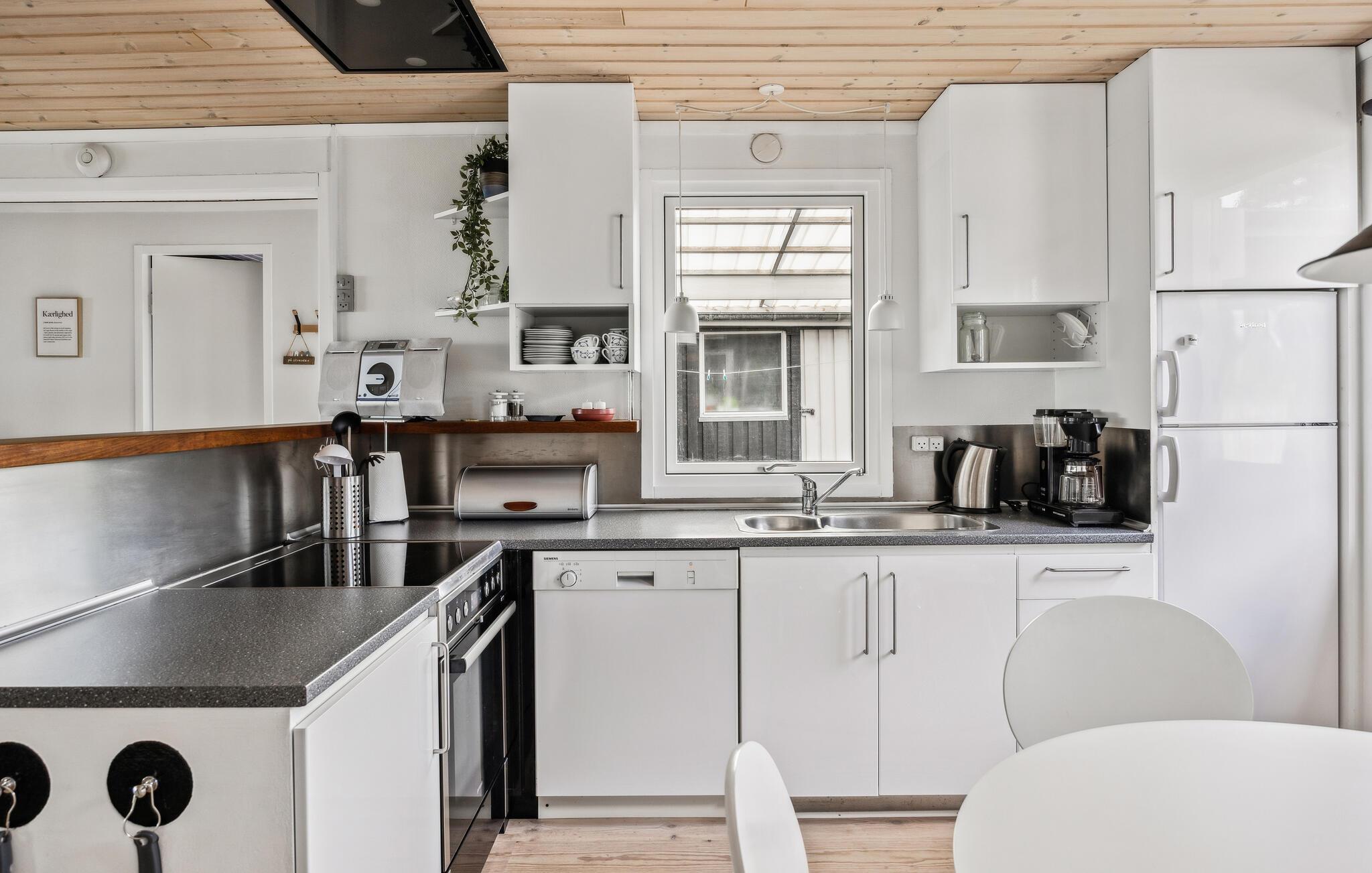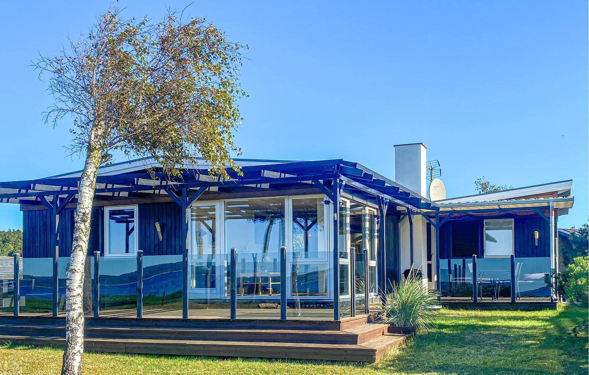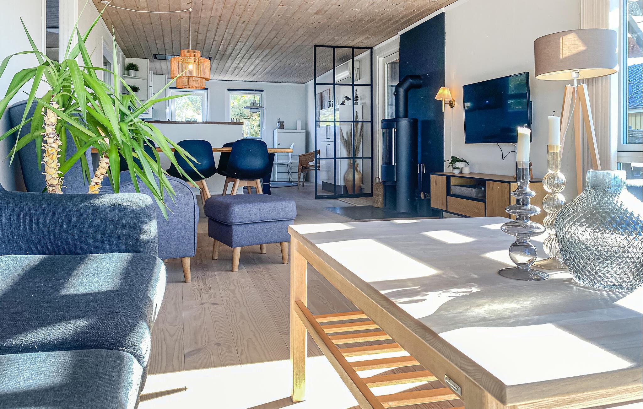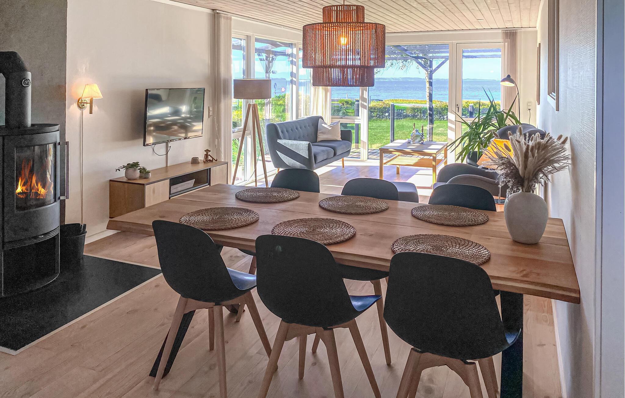 Elegance og rustikhed forenes harmonisk i dette lyse feriehus med træpaneler. gulv til loft-vinduer lukker masser af naturligt lys ind, mens komfortable sofaer og en brændeovn skaber en afslappende atmosfære. Herfra kan I nyde en fantastisk panoramaudsigt over vandet og de bølgende bakker. Uanset om I streamer en god serie eller tilbereder lækre måltider sammen – her kan I tilbringe dagen i jeres eget tempo.