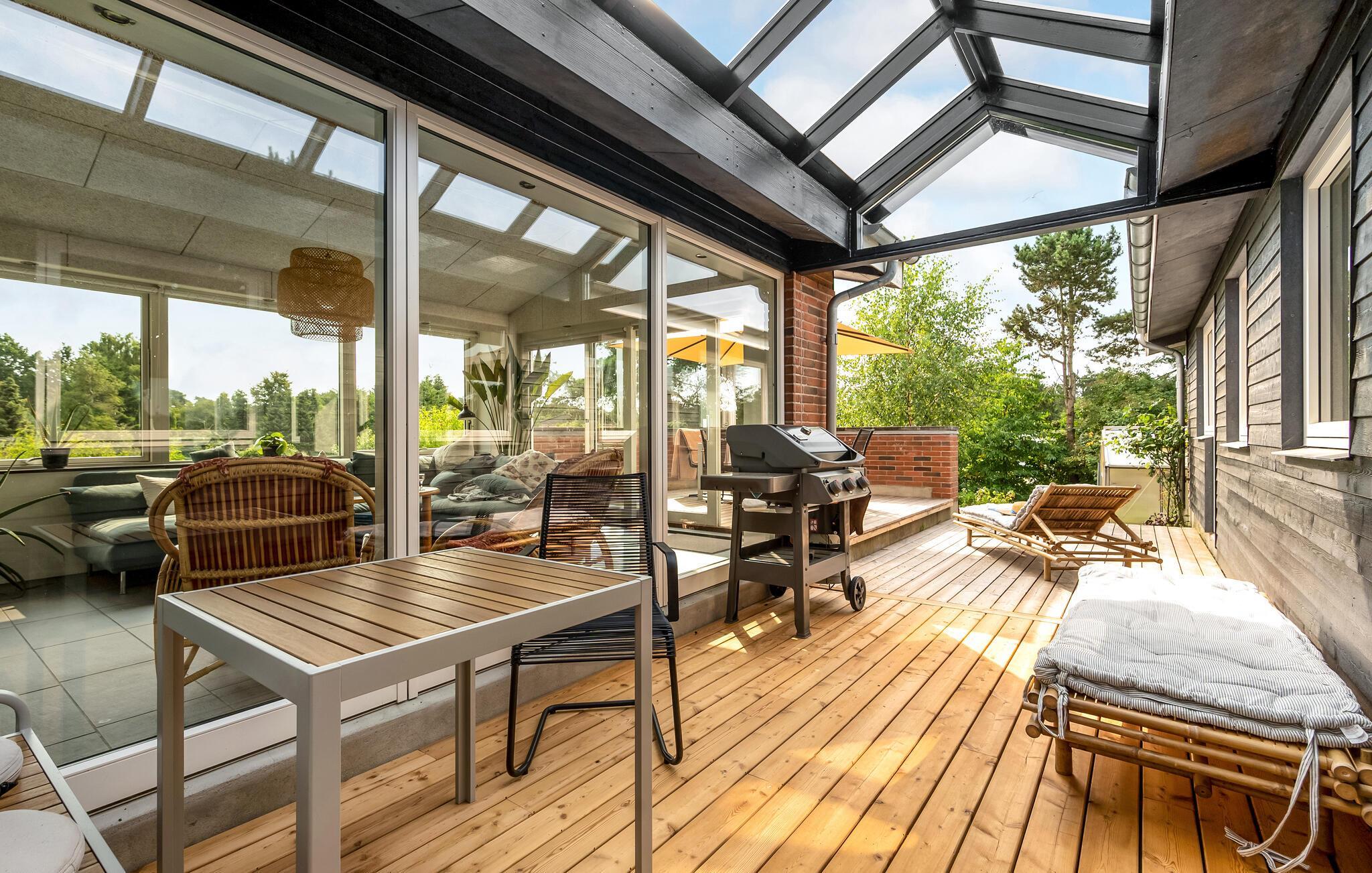 Fredeligt feriehus med store vinduer og hyggelig indretning nær Vibæk Strand og Ebeltoft.