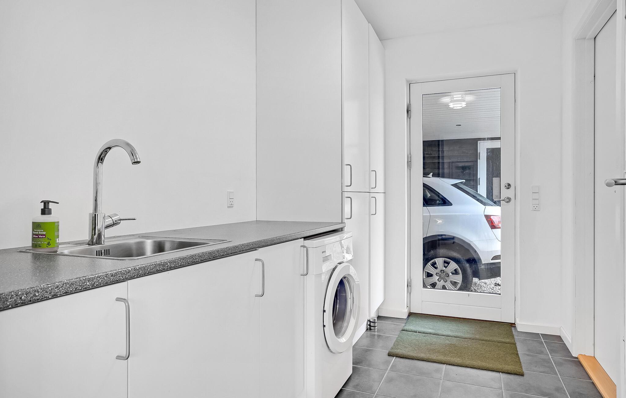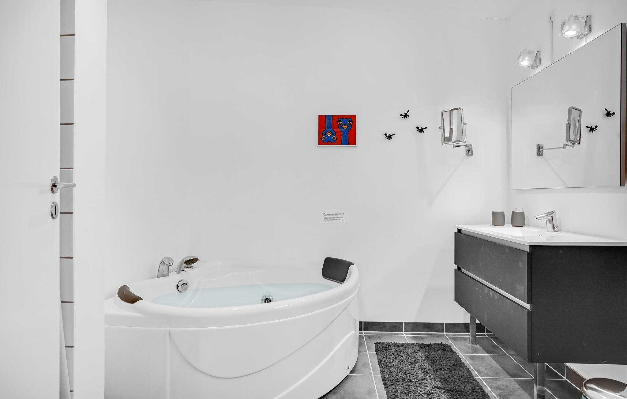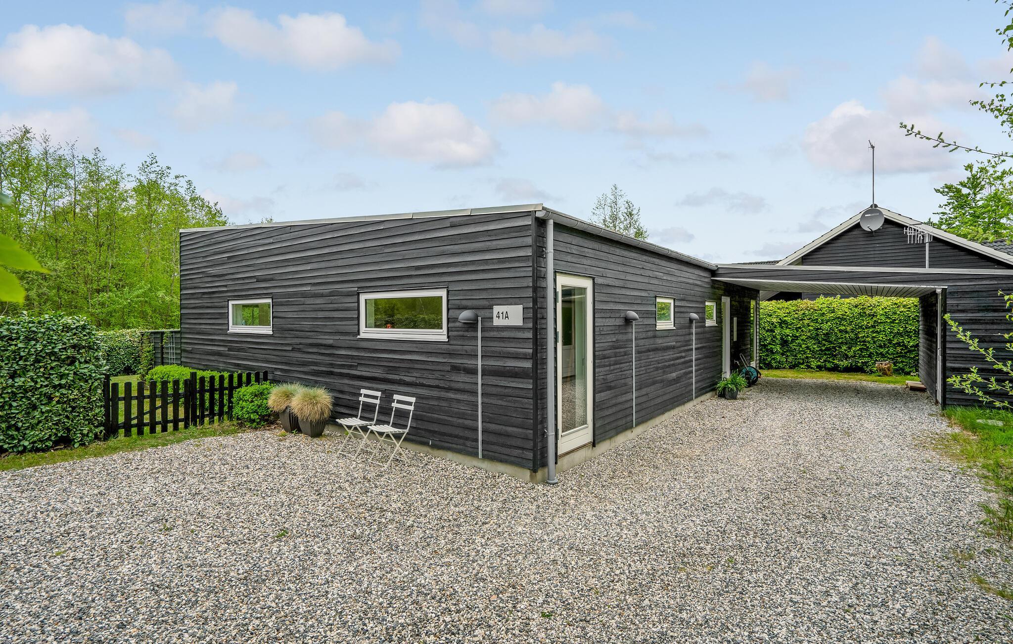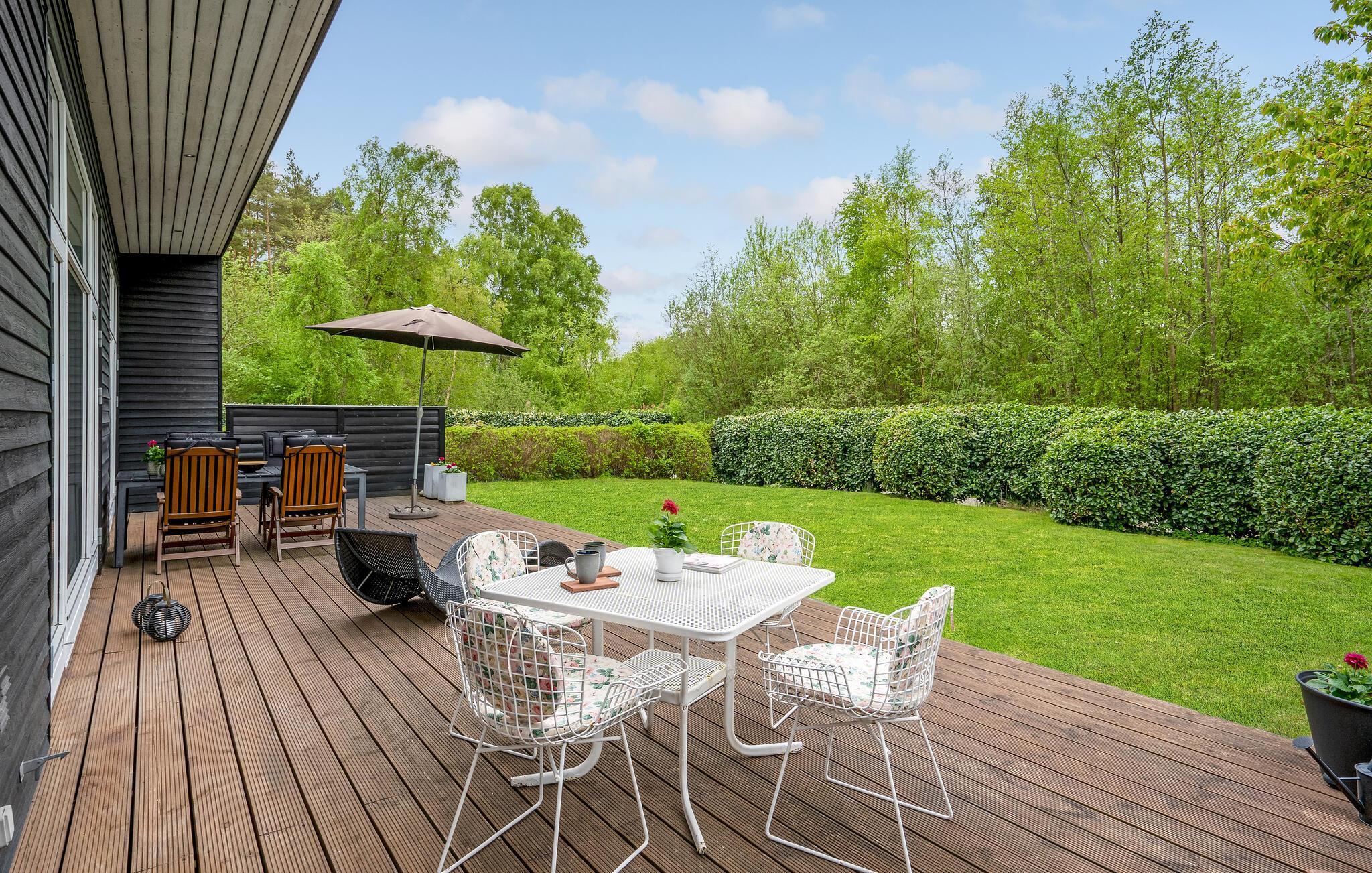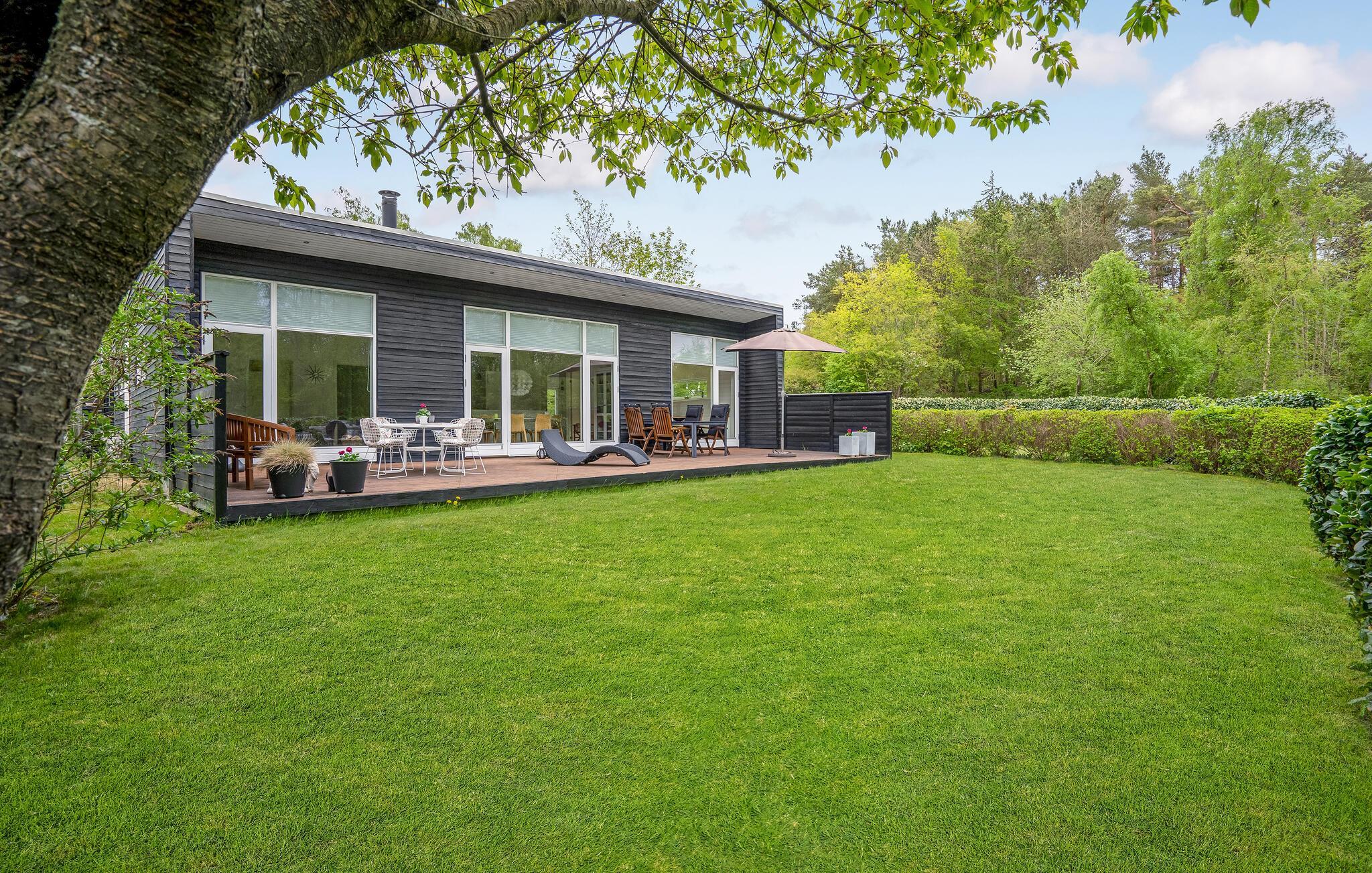 Huset er perfekt til en afslappende familieferie. Husets hjerte er køkkenalrummet, hvor nogle af jer kan tilberede lækre feriemåltider, mens andre slapper af i bløde møbler foran brændeovnen. Gennem de store vinduer har I udsyn til husets fine, grønne have. Til huset hører en stor træterrasse, hvor I kan nyde solen og jeres feriemåltider og holde hyggelige grillaftener. Afslut en herlig feriedag i husets spabad med plads til to personer.