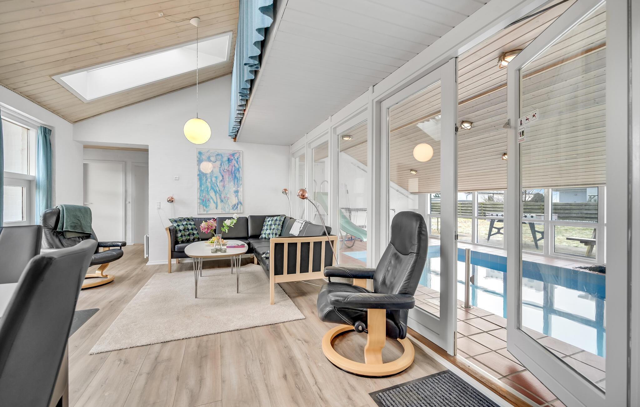 Velkommen til et energivenligt feriehus nær Vibæk Strand med pool, sauna og plads til hele familien.