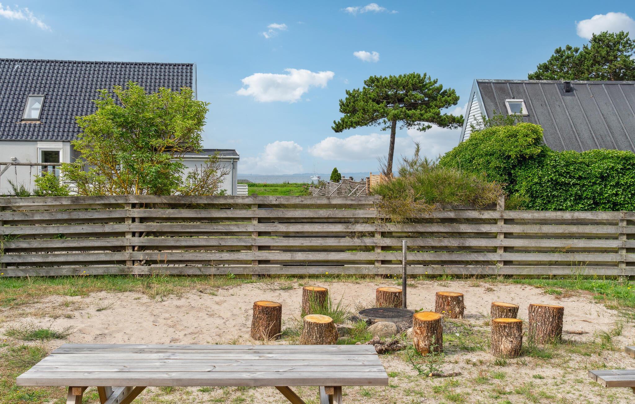 På alle årstider kan dette feriehus opfylde de fleste gæsters betingelser for et dejligt ferieophold for hele familien. Det er godt indrettet til to familier. Fra stuen, som er centralt placeret i huset, er der udsyn og adgang til poolområdet, så I kan følge med i de vandglades aktiviteter og leg i bassinet. Udendørs er der to gode terrasser og masser af plads til leg og boldspil, grunde er indhegnet så hunden kan frit løbe rundt. Huset er ekstra energivenligt med pillebrændeovn og varmepumper til poolen. Desuden kan I skimte havet. Det ligger i et roligt og populært område få hundrede meter fra stranden og i gåafstand til Ebeltoft by med de gamle gader, caféer, spisesteder og shoppingmuligheder. Sovepladserne på hemsen er mest velegnet til børn ( madrasser er 70 x 180 ).