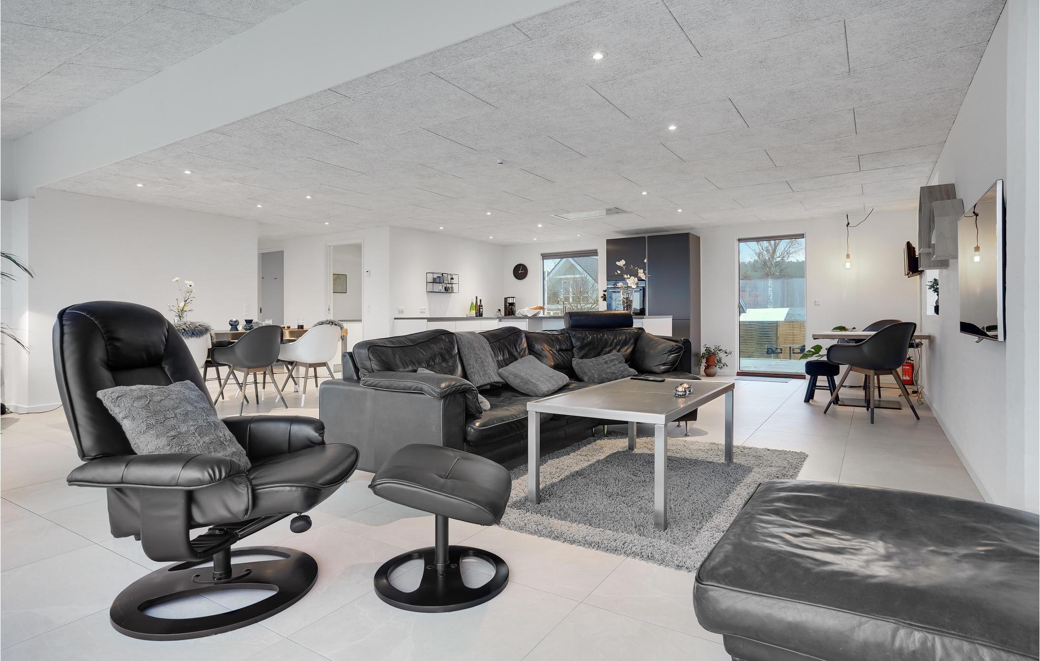Dette sommerhus ligger kun få meter fra stranden og havet, ideelt til en ferie med lange gåture på stranden og dejlige dage ved havet. Hvis I skulle få brug for at arbejde undervejs på ferien, kan I sidde komfortablet ved hæve/sænke-bordet, her er også en god fibernetforbindelse.