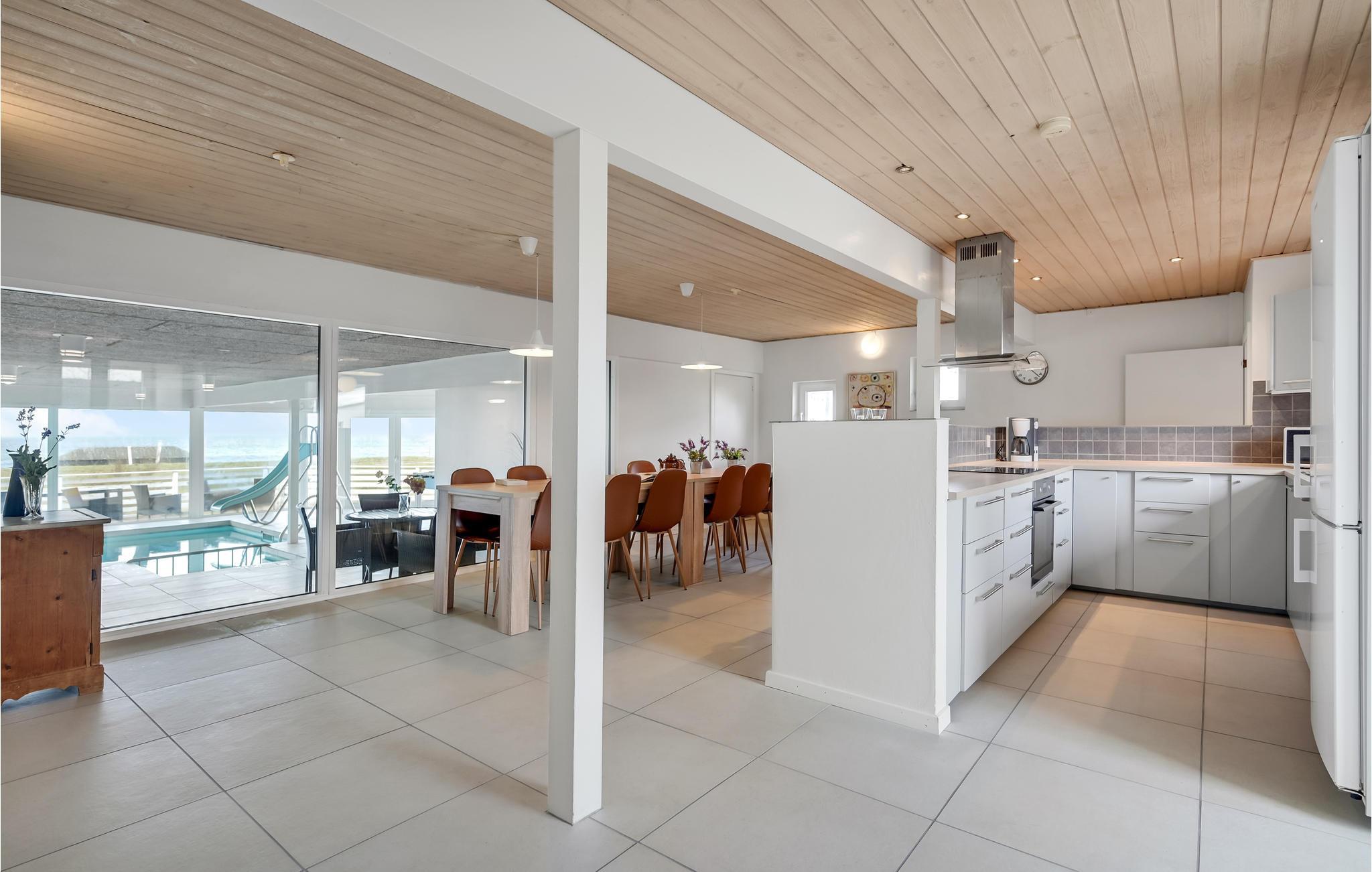 Lidt nord for den idylliske by Ebeltoft med det charmerende bymiljø, ligger denne familievenlige feriebolig. Huset er pænt møbleret og det store poolrum kan byde på både pool, børnepool, fire pers. spabad og en sauna. Fra køkken/alrummet har I fuldt udsyn til poolrummet. Soverummene er fordelt med henholdsvis to i stueetagen og tre på 1. salen. Hver etage har et badeværelse. På terrassen kan I sidde og kigge ud over Vigen og nyde solnedgangen over Mols Bjerge. Kun få skridt over vejen finder I en skøn, børnevenlig badestrand, hvor I kan muntre jer i bølgerne efter kampen på den fælles beachvollybane.