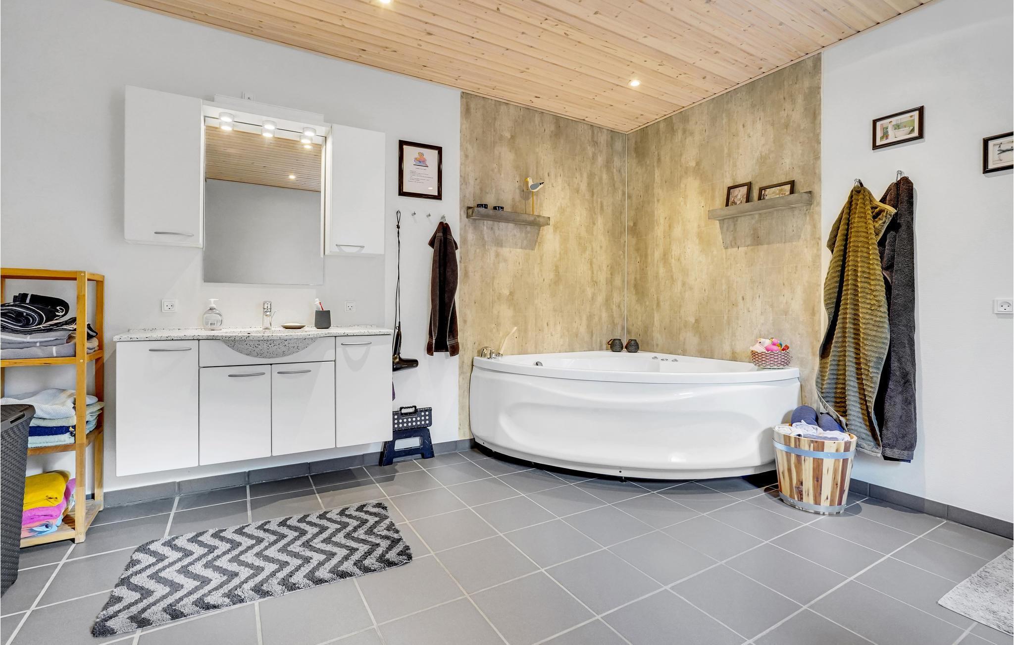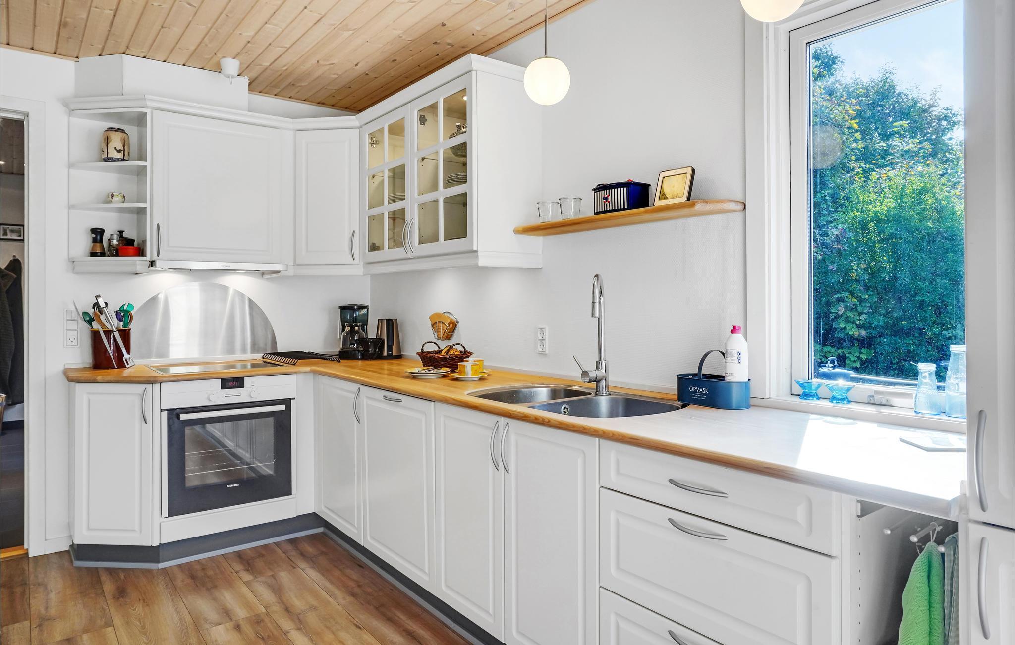 Tilbring en dejlig ferie i dette indbydende sommerhus, som er komfortabelt indrettet og skaber ideelle rammer for et ophold, I vil huske med glæde i lang tid. Spabadet inviterer jer til at slappe af efter en aktiv dag. Om aftenen kan I hygge jer foran brændeovnen og lytte til flammernes knitren.