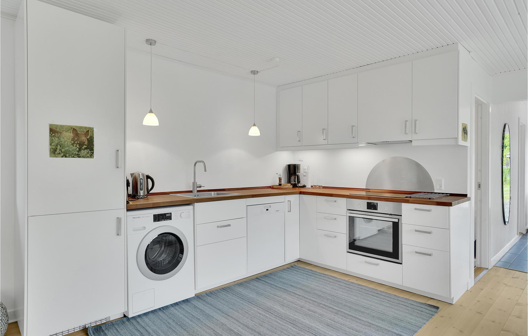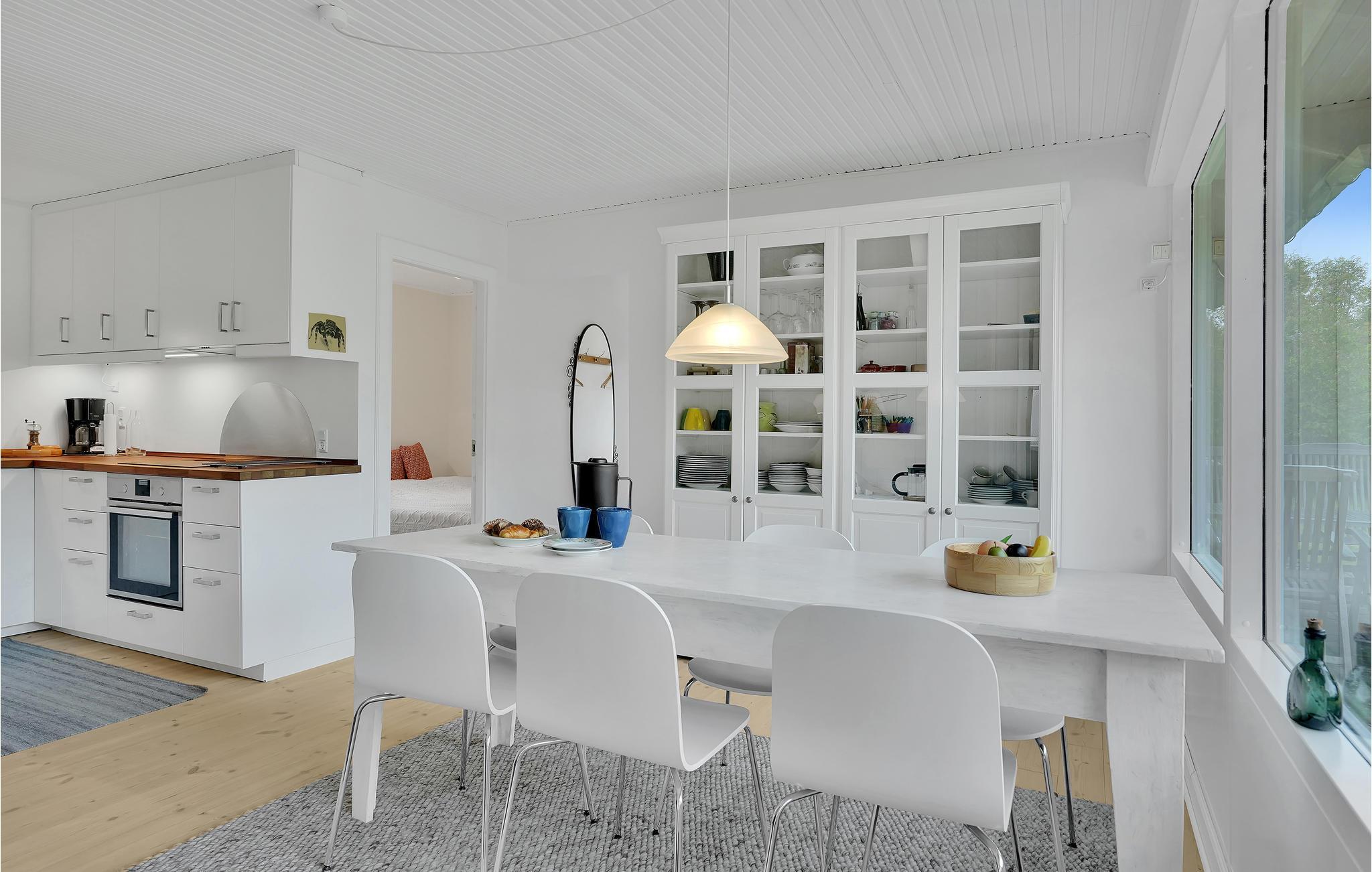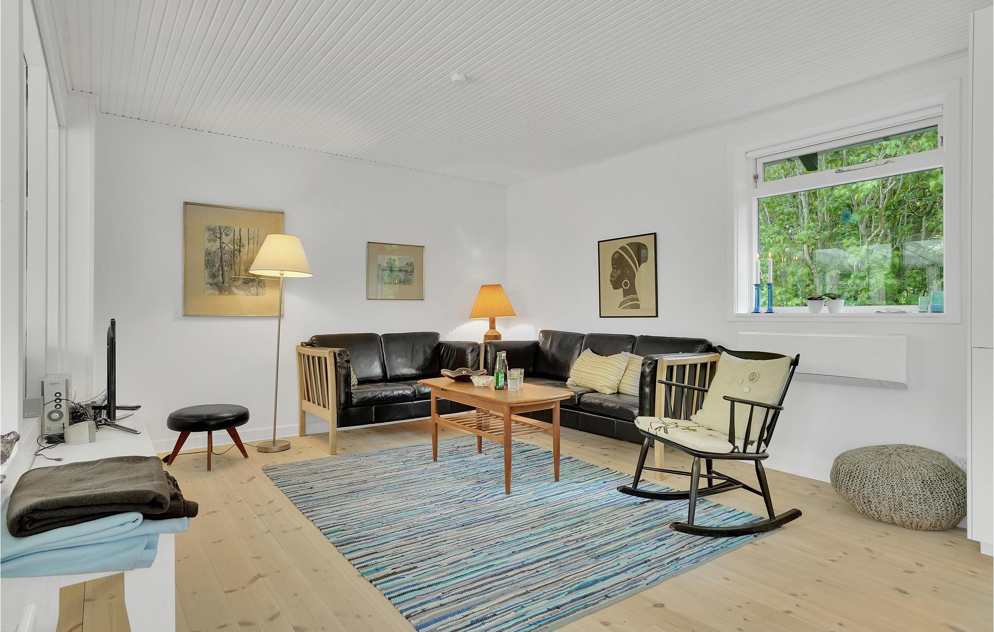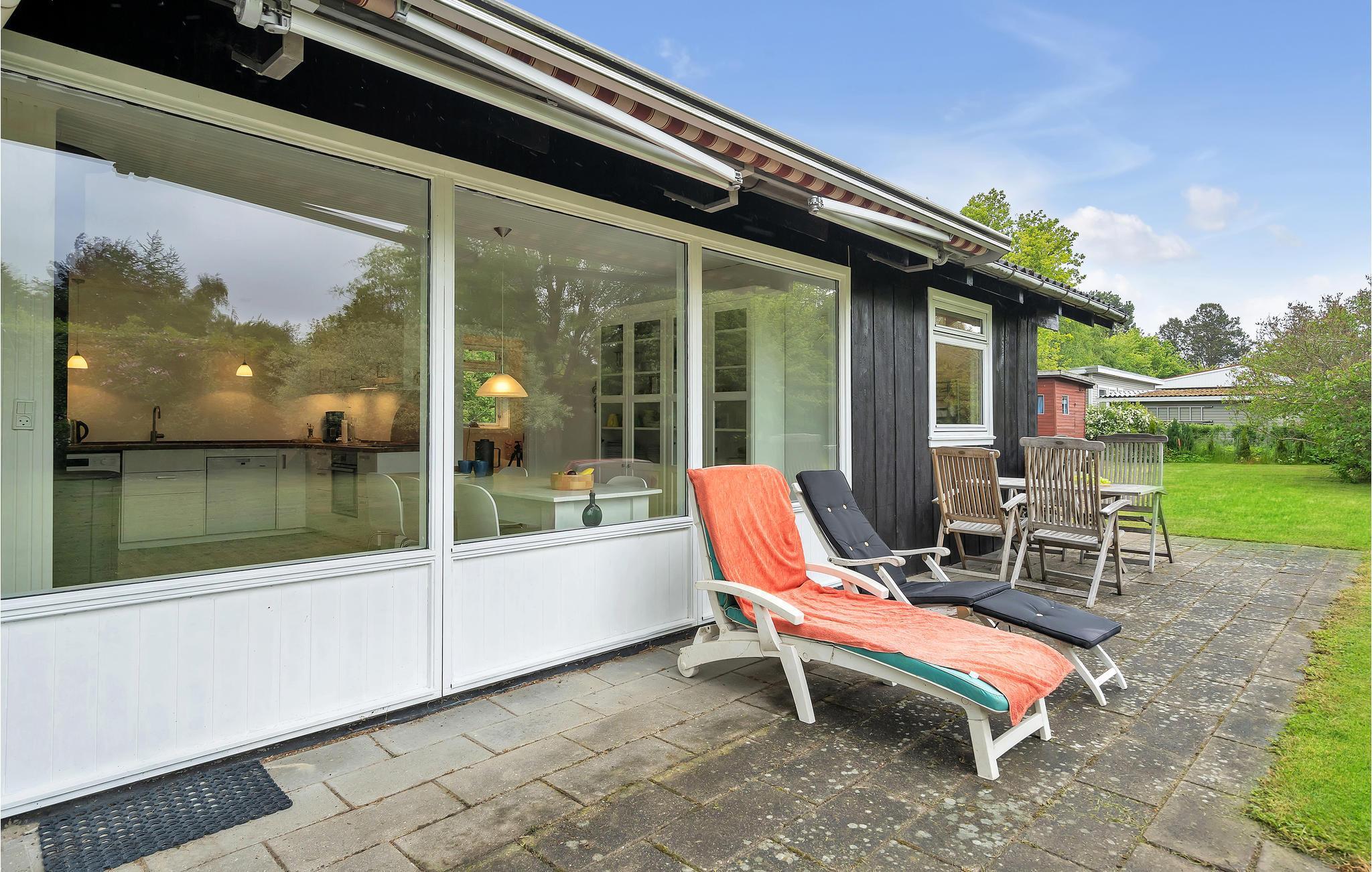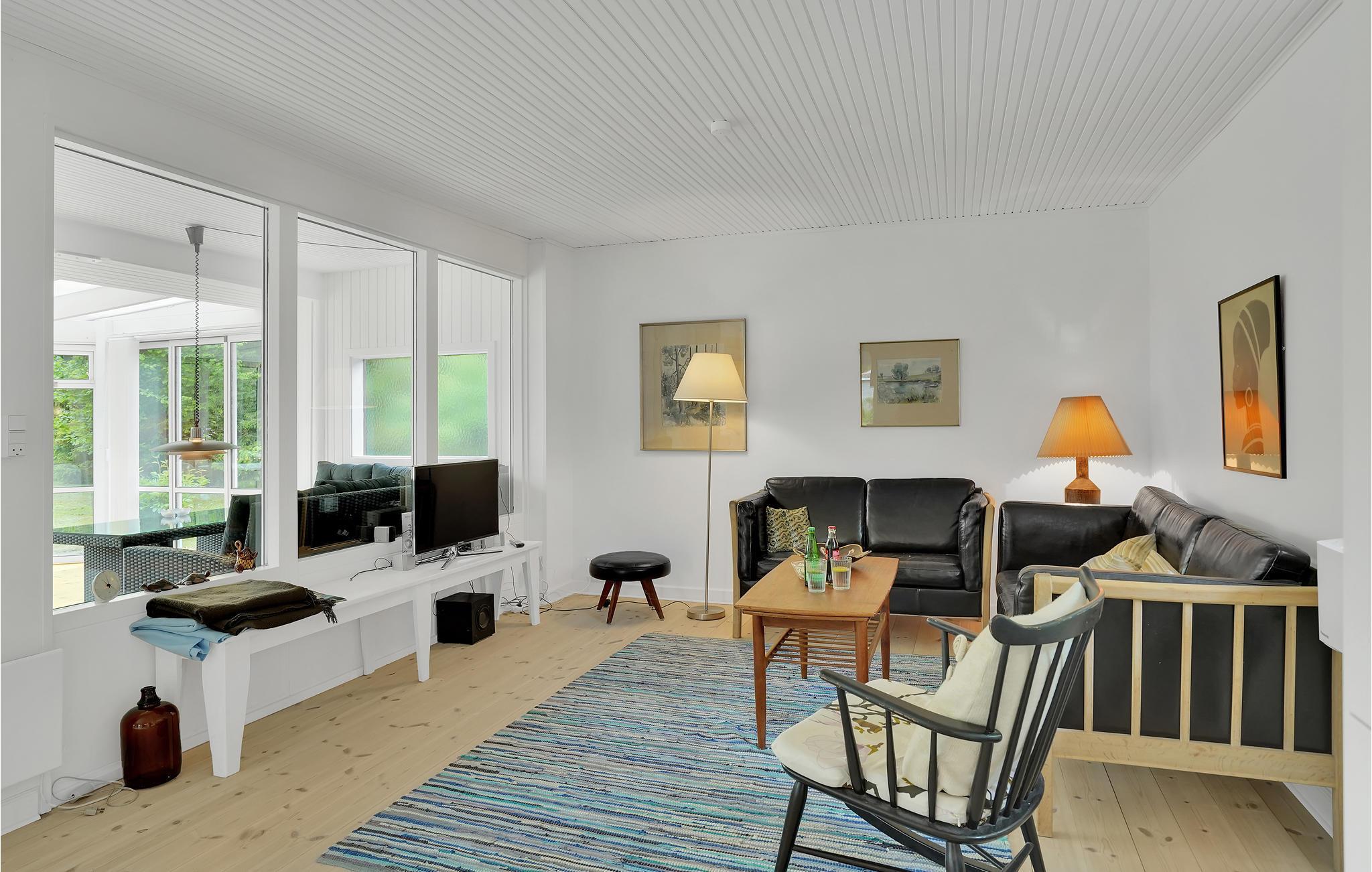 Tag familien med til dette harmoniske sommerhus, som har en stor have og ligger tæt på en dejlig strand. Huset skal især fremhæves for en dejlig udestue, hvor I får følelsen af at sidde udendørs og kan nyde lyset og de grønne omgivelser uanset vejret. Om aftenen bidrager brændeovnen med hyggelig varme. Lyt til ildens knitren, mens I samles om skønne måltider eller slapper af med en spilleaften.