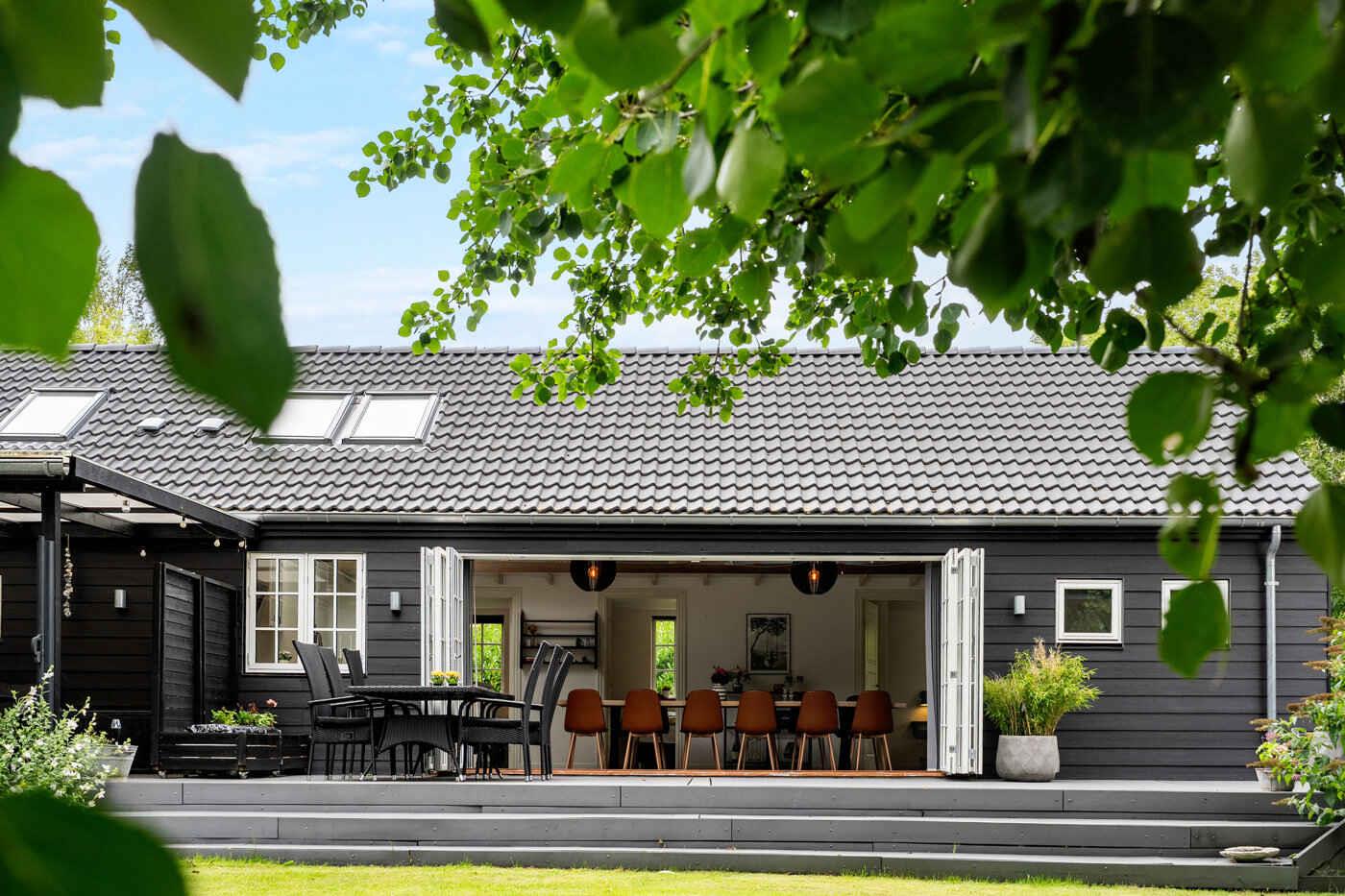 Moderne sommerhus i Vig med vildmarksbad, stor terrasse og nærhed til natur og strand.