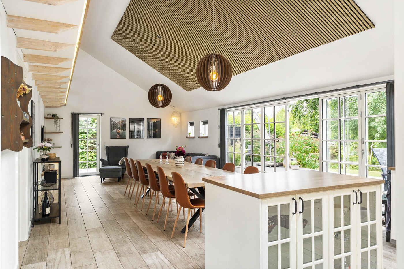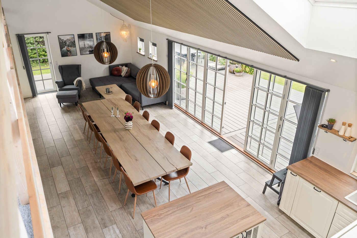 Moderne sommerhus fra 2020 med plads til 8. Stort køkken-alrum med loft til kip, hems og skydedøre til terrasse. Indhegnet naturgrund, vildmarksbad og god ro. 1,5 km til strand.