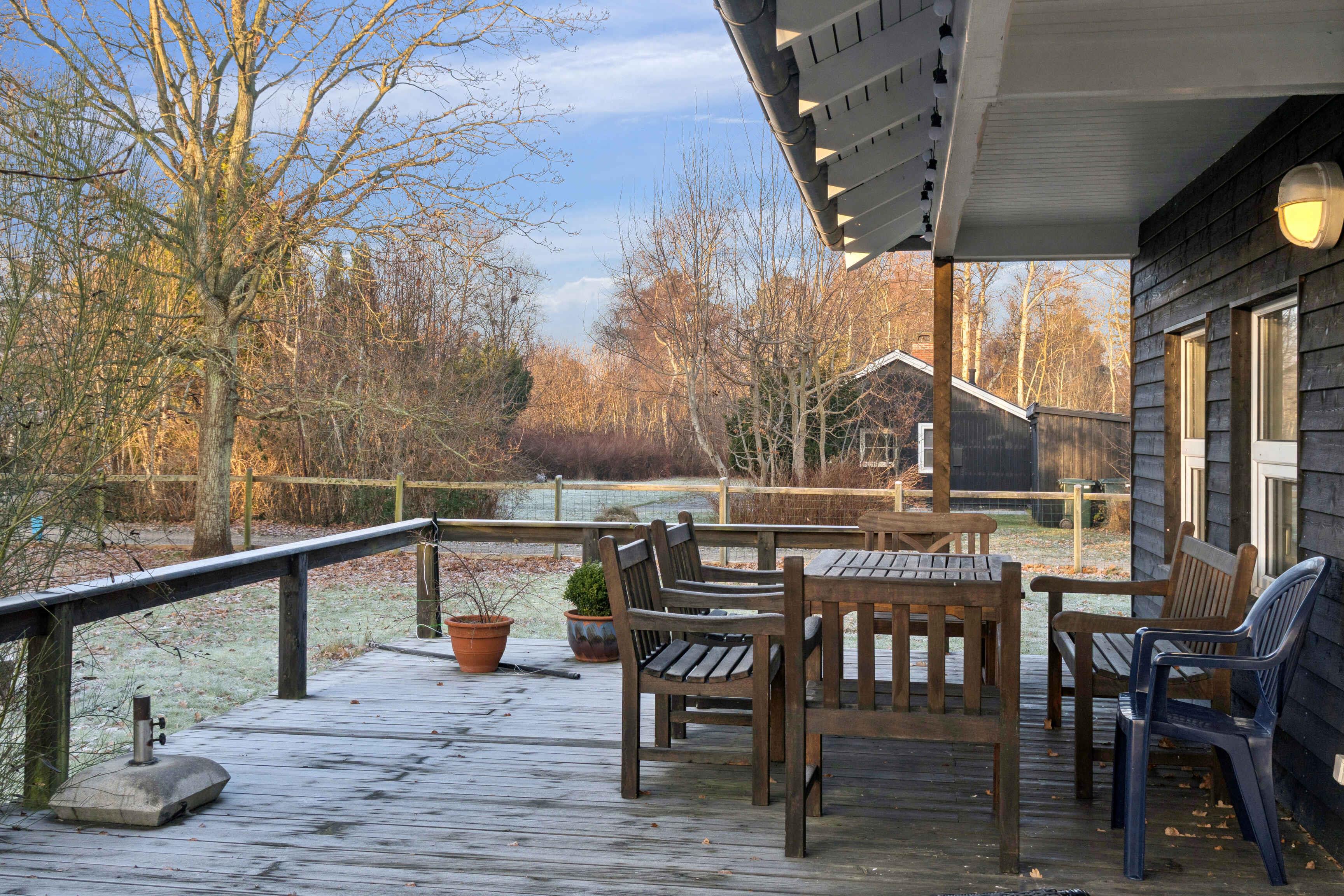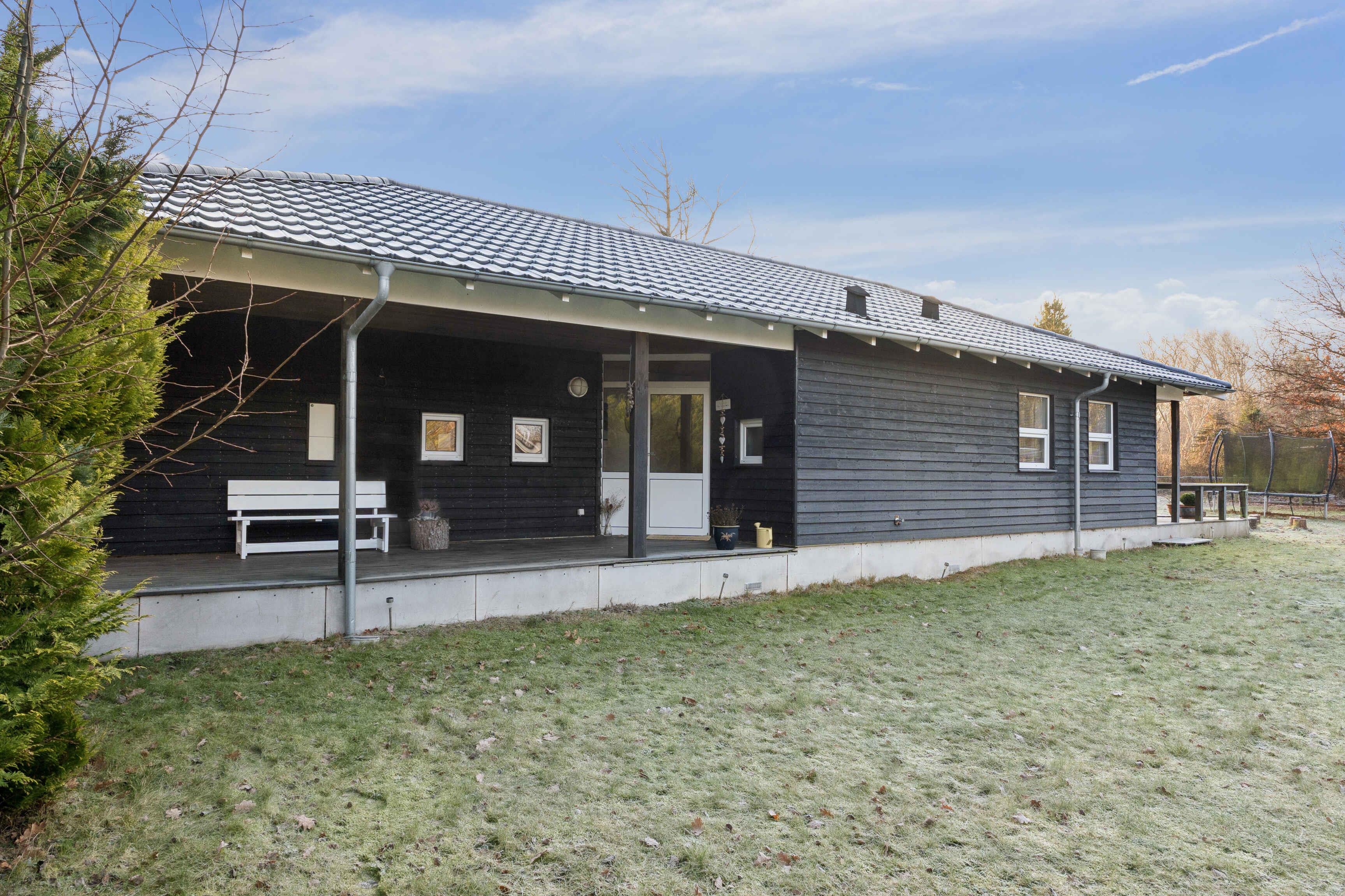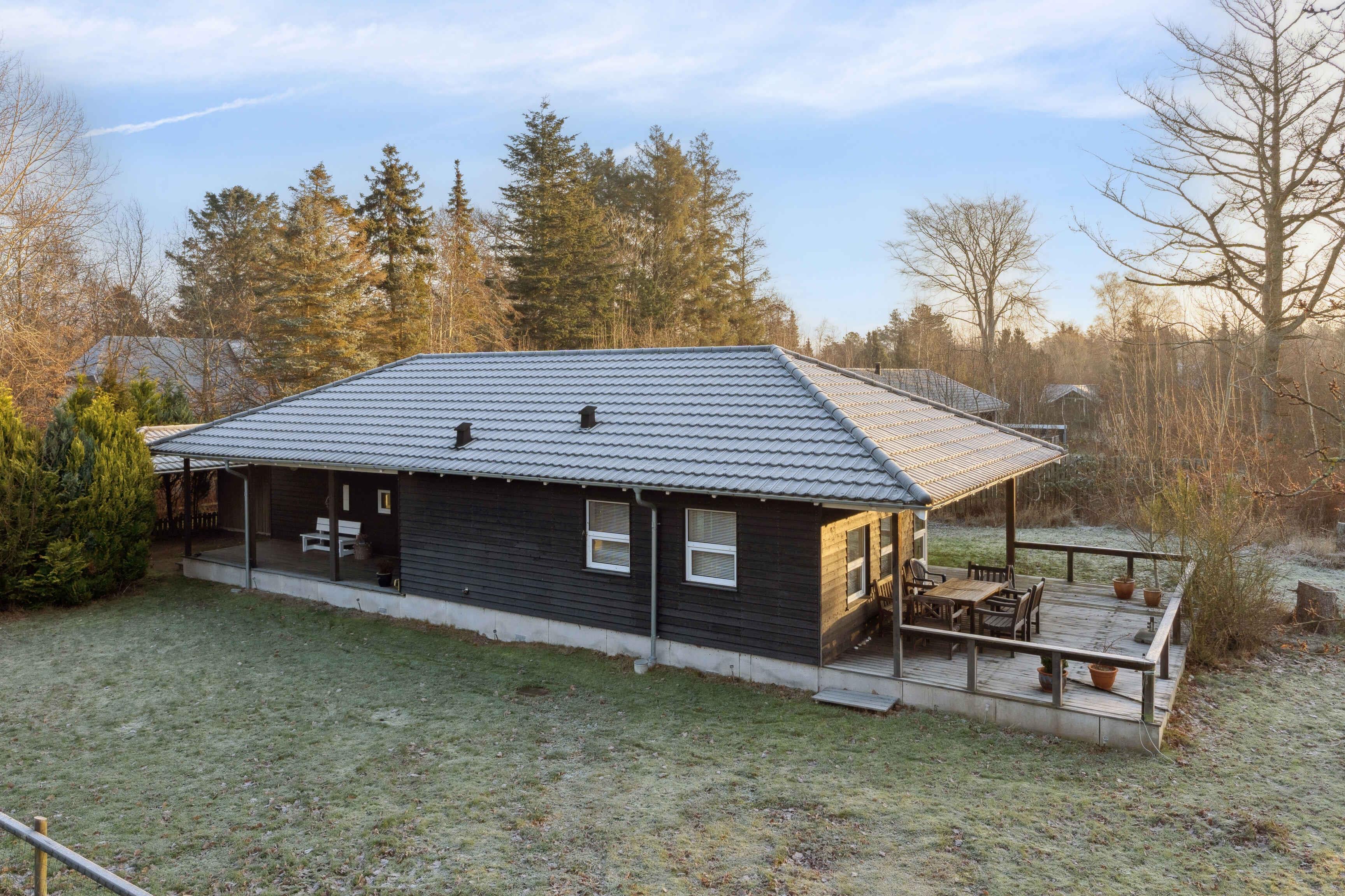 Klassisk sort træsommerhus på stor indhegnet grund tæt på Korevlerne og en af Danmarks fineste strande. Nyd solen på den store terrasse. Odsherred byder på flot natur, kunst og oplevelser som Sommerland Sjælland, Dragsholm Slot og Rørvig havn.