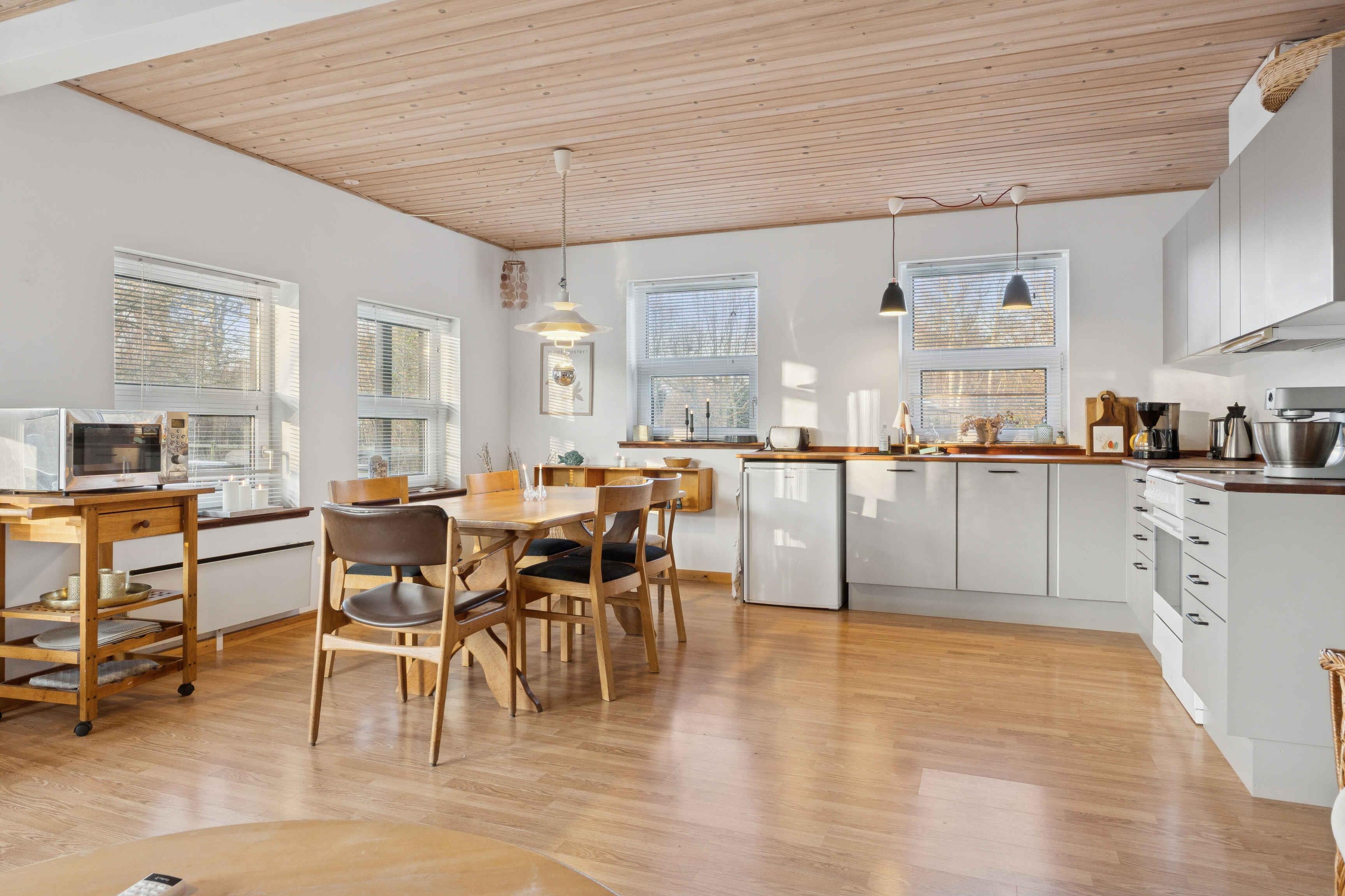 Klassisk sort træsommerhus på en dejlig, stor og indhegnet grund. Sommerhuset ligger helt tæt på Korevlerne og en af Danmarks fineste strande, hvilket gør det oplagt til både afslapning og lange dage ved vandet. Her er rig mulighed for at nyde solen på den store terrasse og få det bedste ud af udelivet. I mere end 100 år har Odsherred været et af danskernes foretrukne feriemål. Det skyldes blandt andet de flotte strande, kunsten og det varierede landskab. Odsherred er omgivet af Isefjorden, Kattegat og Sejerø Bugten, og solens spejling giver området et helt særligt lys, som kun findes få andre steder i Danmark. Der er masser af aktiviteter og oplevelser for hele familien. Besøg for eksempel Sommerland Sjælland, hvor alle forlystelser er gratis, når entréen er betalt. I kan også tage til Odsherred Zoo i Asnæs eller opleve Dragsholm Slot fra 1200-tallet, hvor det hvide spøgelse efter sigende skulle husere. Slottet ligger unikt og naturskønt ved Nekselø Bugten, og her kan I samtidig få en kulinarisk oplevelse med lokale råvarer. Et besøg værd er også Nykøbing Sjælland, som byder på gode indkøbsmuligheder med flere supermarkeder samt en hyggelig gågade med specialbutikker og caféer. Eller tag en tur til Rørvig og nyd stemningen på havnen, hvor der hver dag kan købes og nydes friskfangede og nyrøgede fisk, mens børnene fanger krabber fra molen.