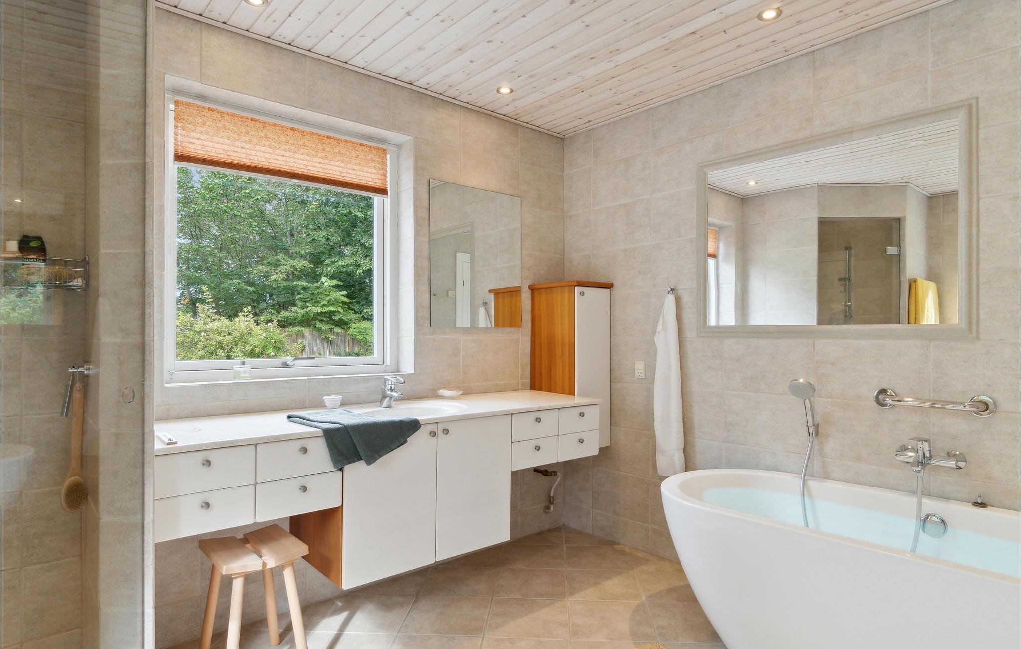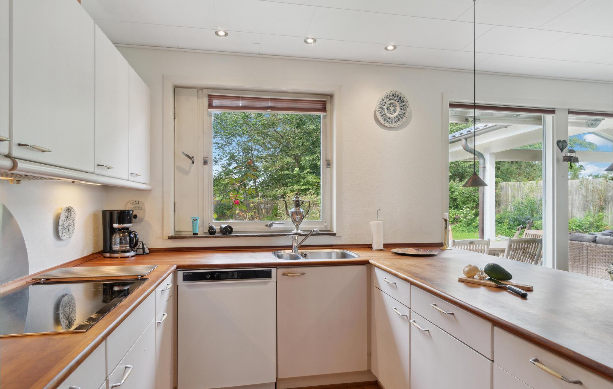 Drømmer I om et hus med havudsigt og gode faciliteter, kort gåafstand til stranden og masser af plads til familien? Så er I kommet til det rette sted. Velkommen til dette familiehus, der lover jer en minderig ferie i stilfulde rammer. Her er der kræset for detaljen og skruet op for hyggen! Mon ikke alle jeres ferieønsker går i opfyldelse? Den store vinkelstue, som kombinerer madlavning, spisning og afslapning, bliver familiens centrale mødested. Herfra kan I gå ud på den delvist overdækkede terrasse, hvor I kan nippe til en sundowner eller forsvinde ind i yndlingsbogen på en af solstolene. Smid badehåndklædet over skulderen og stå med fødderne i sandet, når I har krydset vejen. Gå gennem det lave vand og slik sol på sandbankerne. Beliggenheden indbyder til at kaste snøren ud tidligt om morgenen eller sent om aftenen, og hvis I har cykler med, kan I følge Nordkystruten mod vest og øst lige foran huset.