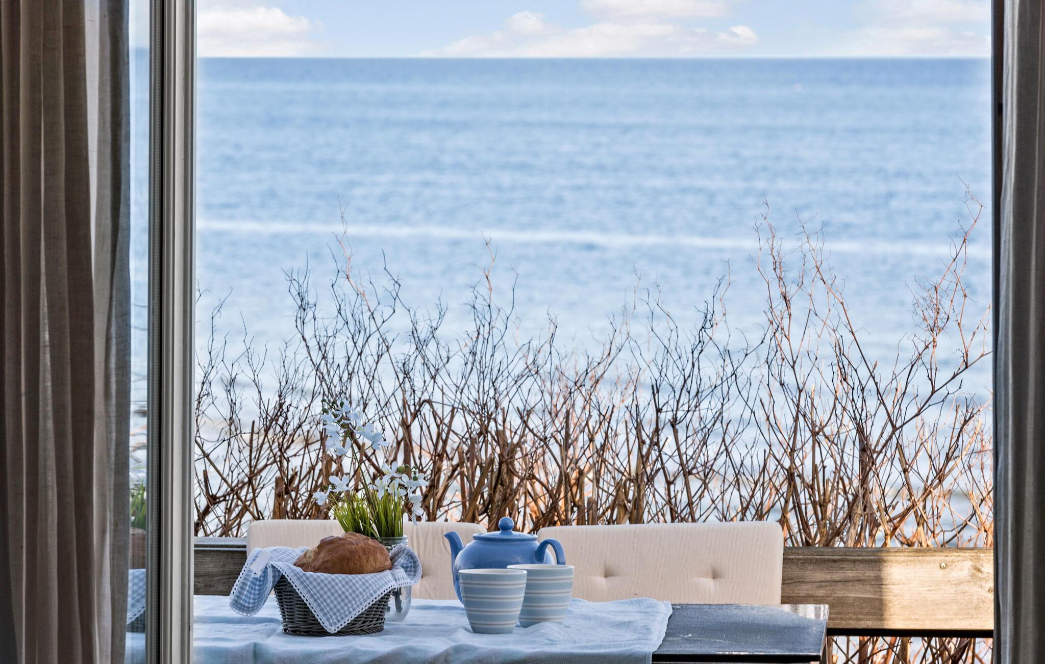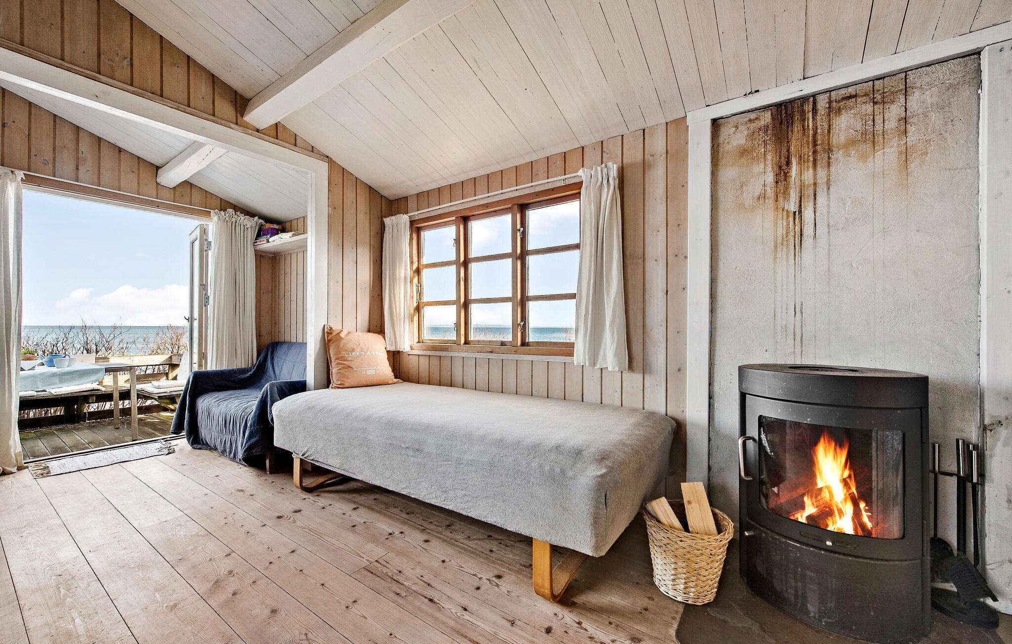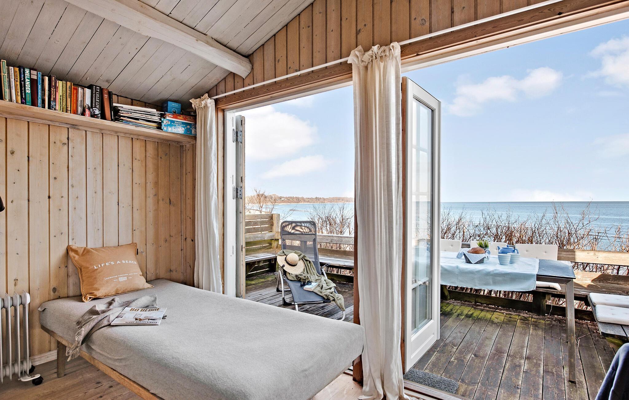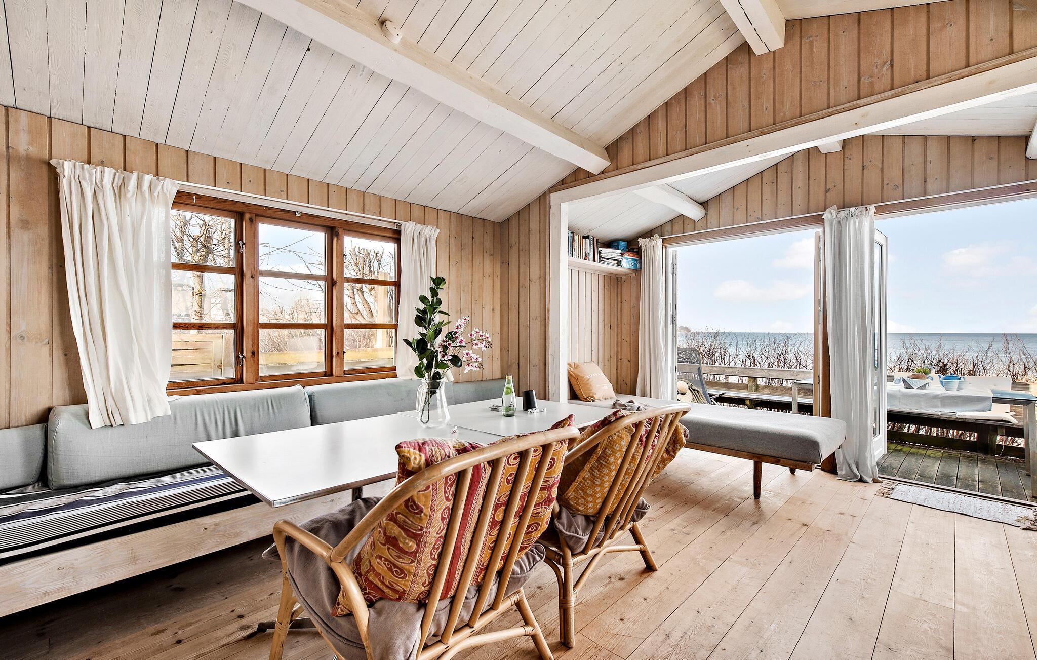 Hyggeligt træhus med panoramaudsigt ved stranden