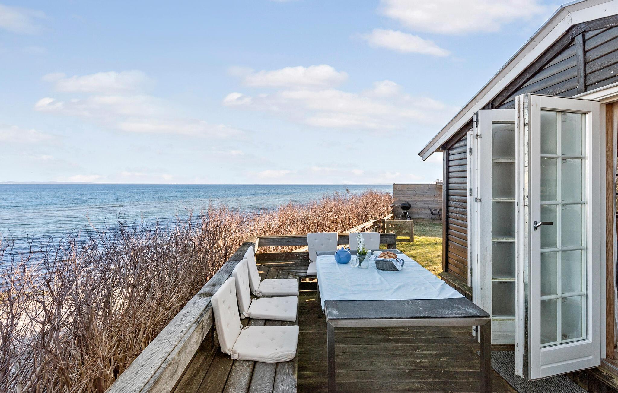 Det er dog udearealet, der gør dette hus særligt magisk. I bor lige ved vandet, så bryg en god kaffe som det første om morgenen og nyd solen stå op, inden I går ned for dagens første dyp. Om aftenen kan I nyde solnedgangen med et glas vin og lækre retter fra grillen. Børnene finder mange legeredskaber at boltre sig med i haven, inden I går ned af jeres private trappe til stranden.
