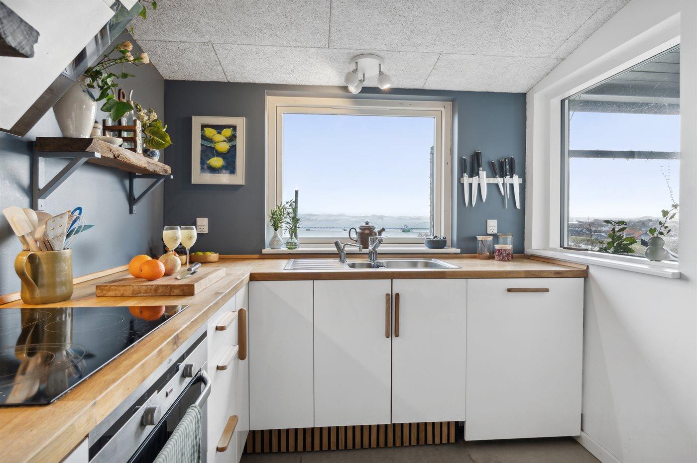Køkkenet er udstyret med 1 køleskab. Der er 4 keramiske kogeplader, varmluftovn samt opvaskemaskine.