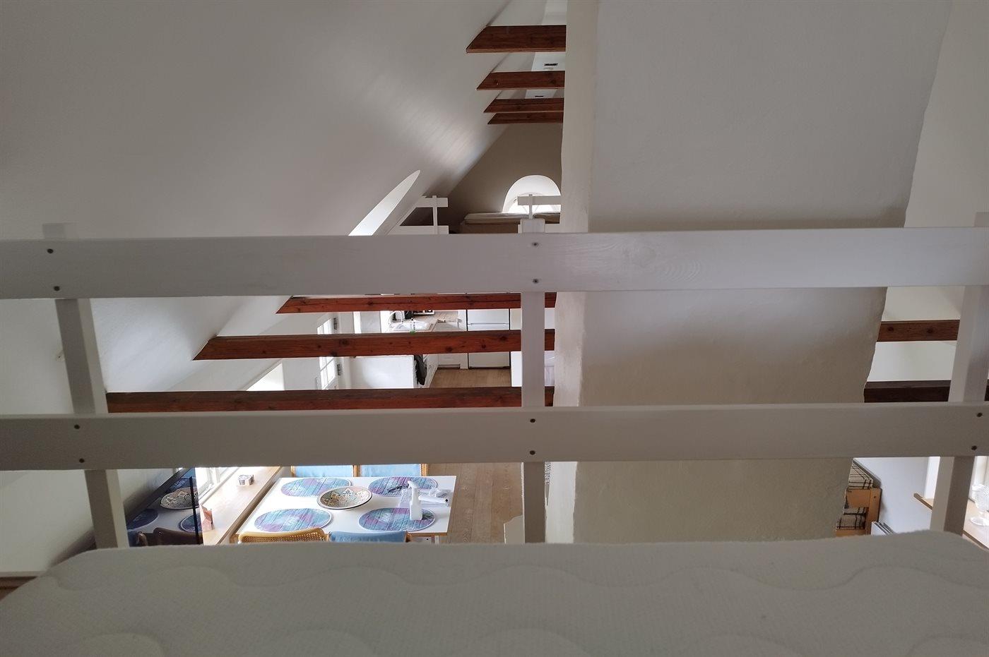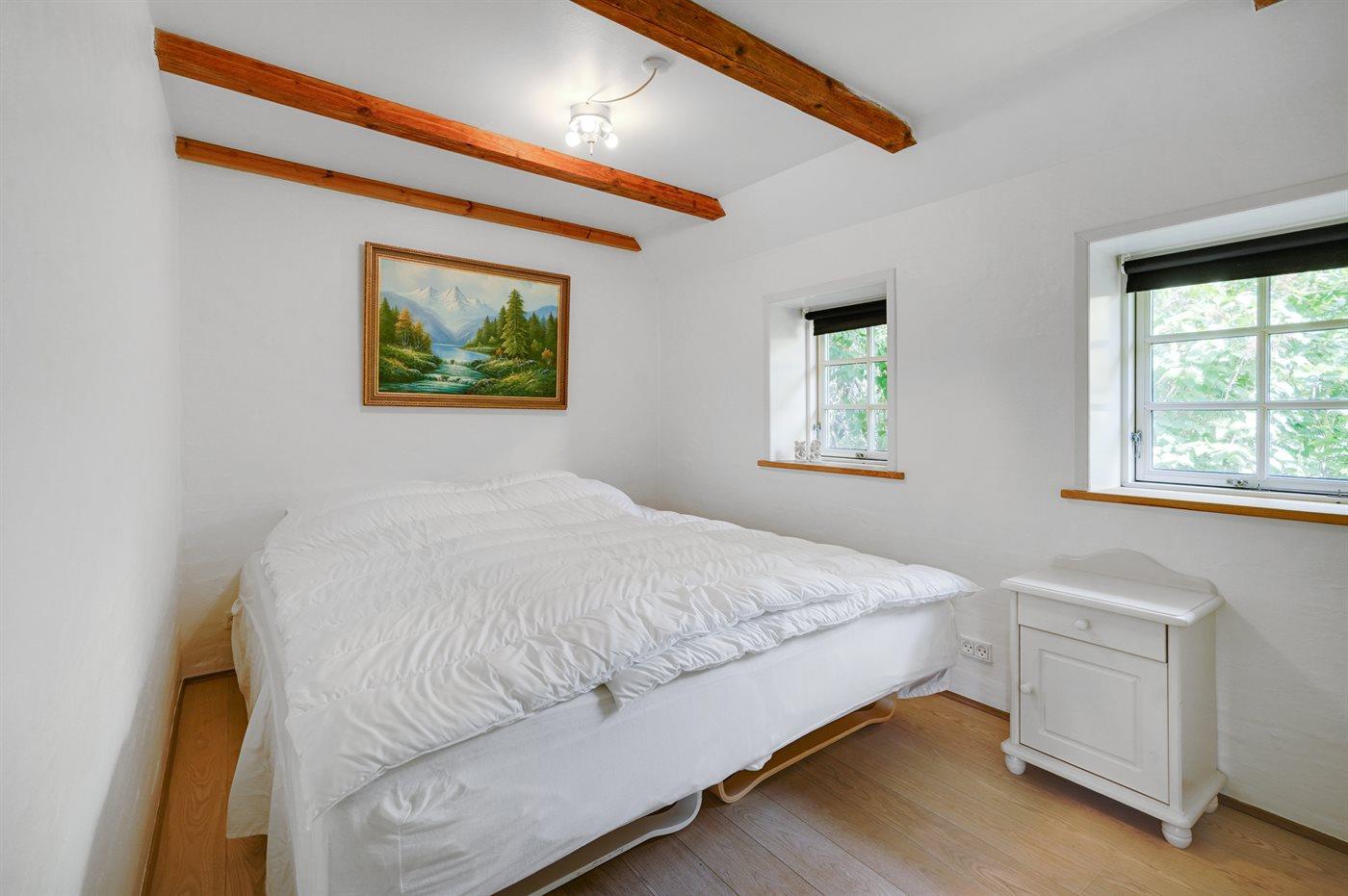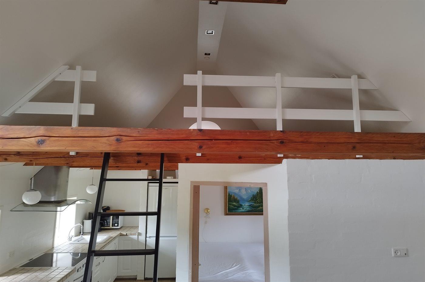 Der er i alt 1 soveværelse. Sovepladserne fordeler sig på: 2 sovepladser i dobbeltseng. 2 sovepladser i sovesofa (dobbelt). 2 sovepladser på madrasser. 2 af disse sovepladser befinder sig på husets hems.