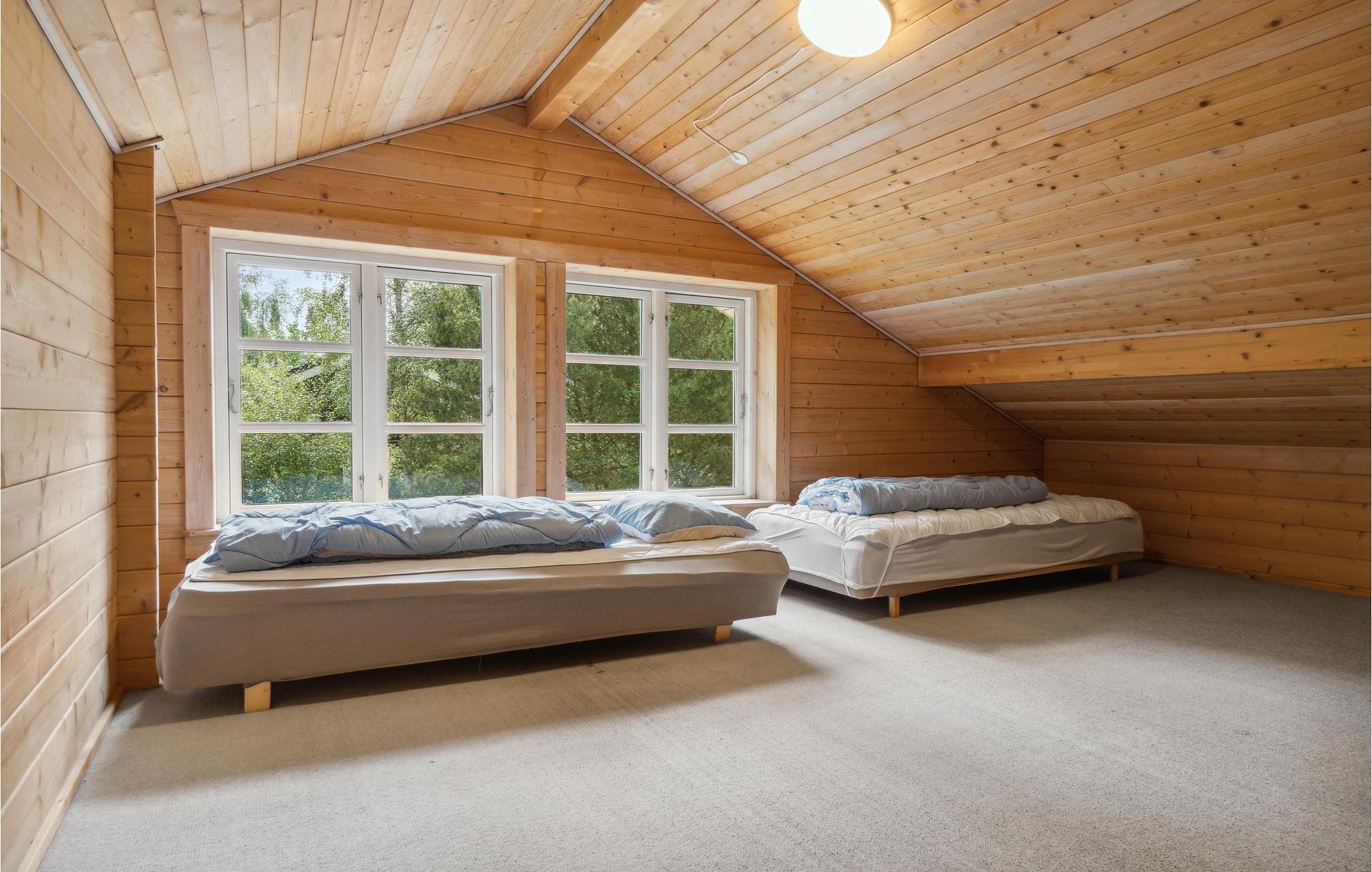 Rummeligt bjælkehus ved Vollerup Strand med sauna, spabad og stor have for afslappende ferieoplevelser.