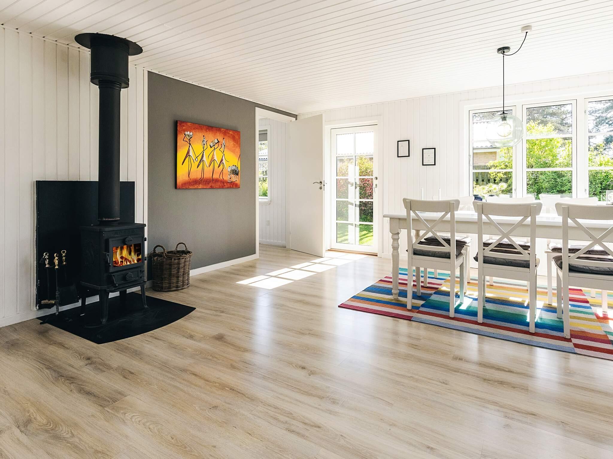 Køkkenet er veludstyret med komfur, køleskab med fryser, kaffemaskine, opvaskemaskine og mikroovn, så det er nemt at tilberede måltider sammen. Udenfor indbyder en stor have og terrasse til afslapning og leg. Nyd solen på to liggestole, spis på havemøblerne eller grill en lækker måltid på kulgrillen. Børnene kan lege sikkert i sandkassen, og der er et begrænset antal cykler til rådighed efter forudgående aftale. Huset opvarmes med energieffektive varmepumper og brændeovnen, hvilket sikrer en hyggelig atmosfære selv på køligere dage.