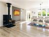 1 Opholdsstue: Brændeovn, Chromecast, tv, høj stol