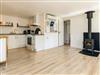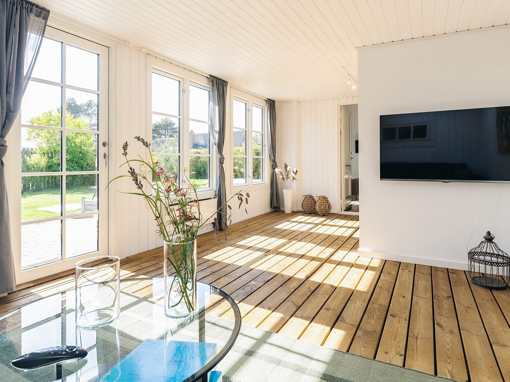 Indvendigt flyder det åbne køkken og spiseplads naturligt over i stuen og skaber et lyst og indbydende rum. Stuen har en hyggelig brændeovn, et tv med Chromecast og en komfortabel sofa med chaiselong. De tre soveværelser har dobbeltsenge, og for familier, der rejser med små børn, kan der arrangeres en barneseng og en højstol efter anmodning. Badeværelset er udstyret med brusebad, toilet, håndvask og håndklædetørrer, og bryggerset har en vaskemaskine for ekstra bekvemmelighed.