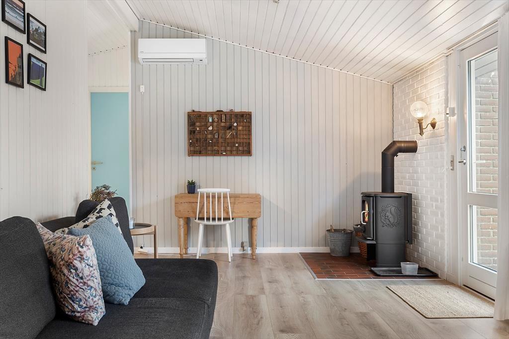 Sommerhus i Vorupør, Nordjylland, med plads til 5 voksne og 2 husdyr. Der er en hyggelig indretning med bl.a. brændeovn, og du finder desuden vaskemaskine og opvaskemaskine i boligen.