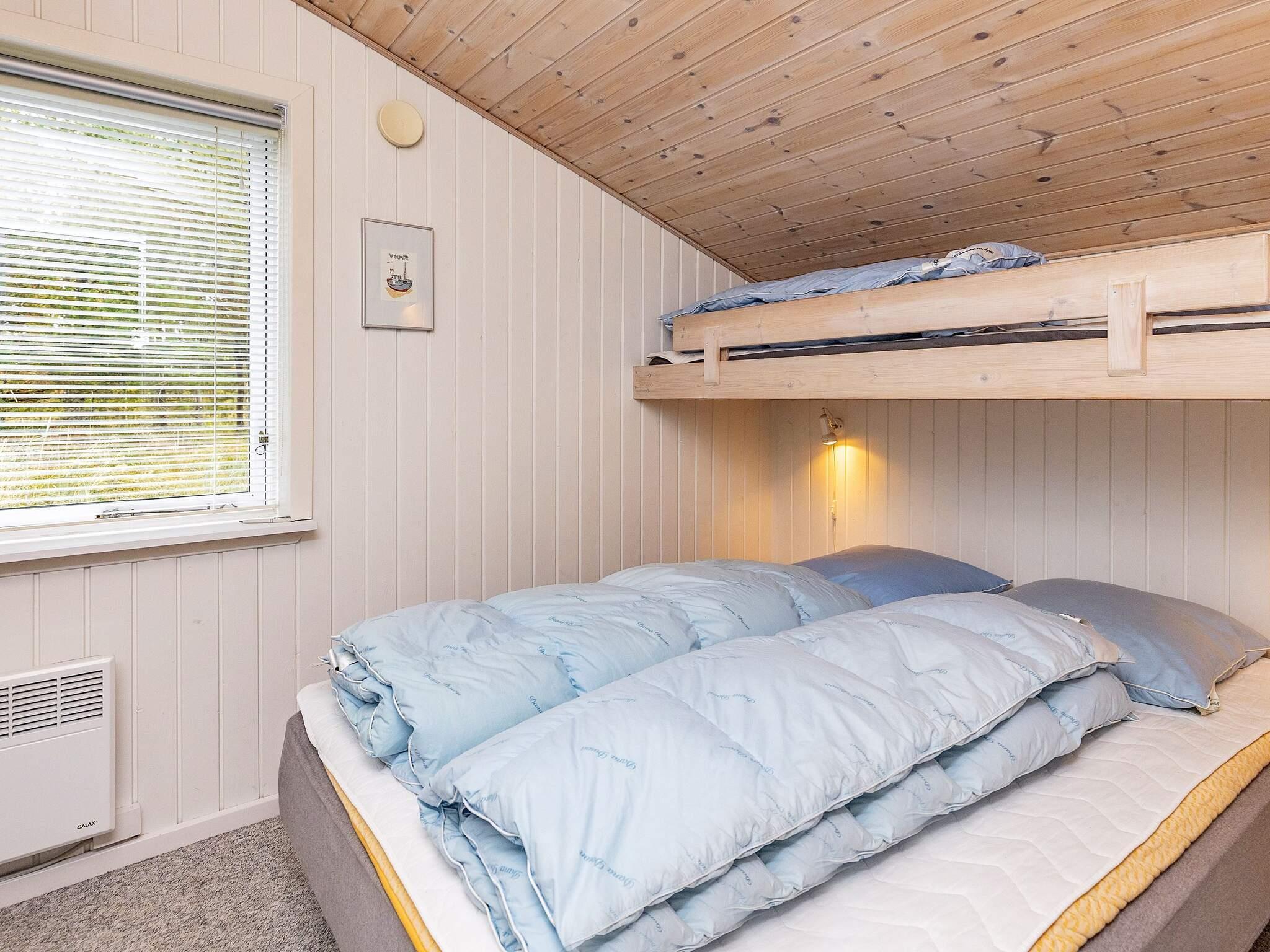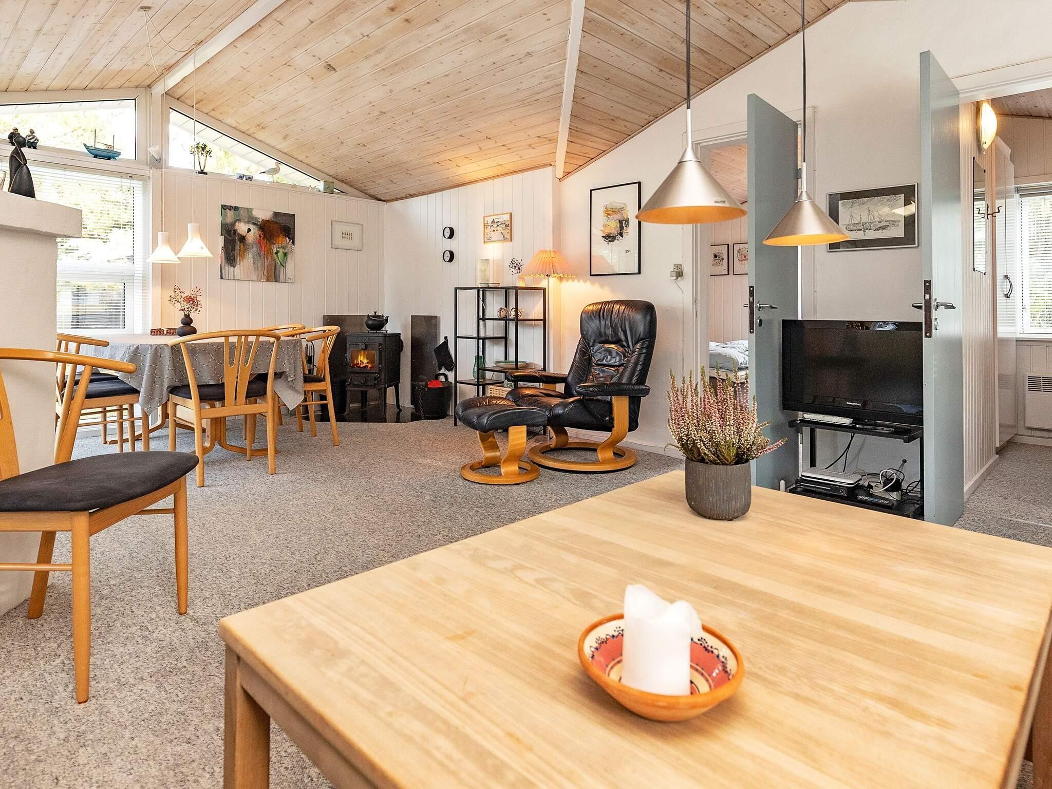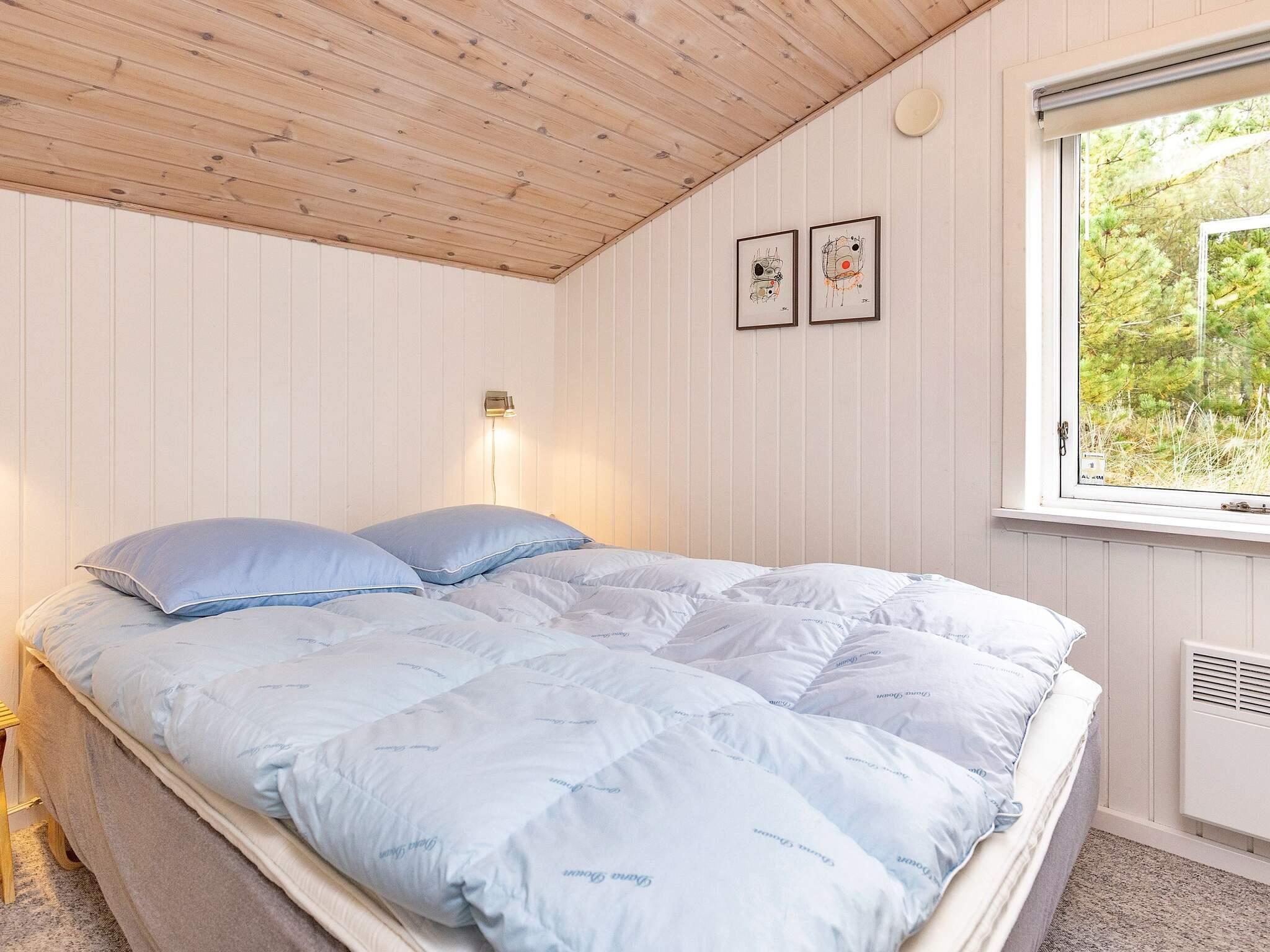 Velholdt sommerhus beliggende på 600 m² klitgrund med træer. Huset indeholder opholdsstue med spiseplads, tv med tyske kanaler og stereoanlæg med cd-afspiller. Endvidere brændeovn til en kølig sommeraften eller en efterårsaften med regn og rusk. Åbent køkken med opvaskemaskine, køleskab med frostboks m.m. Der er 2 gode soverum; det ene med dobbeltseng, det andet med en dobbeltseng og en køje. I husets badeværelse er der behagelig gulvvarme, og her finder I også vaskemaskine og tørretumbler. Hyggelig gårdhave med havemøbler. Huset er beliggende i godt sommerhusområde med mange træer og med gode muligheder for at finde læ.