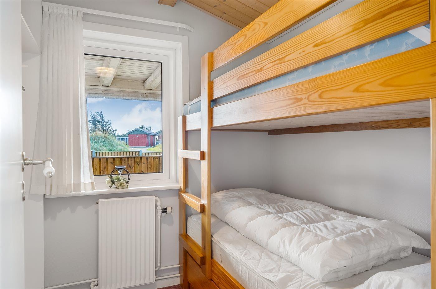 Der er i alt 3 soveværelser. Sovepladserne fordeler sig på: 4 sovepladser i dobbeltsenge. 2 sovepladser i køjeseng. Derudover er der 1 stk. barneseng.