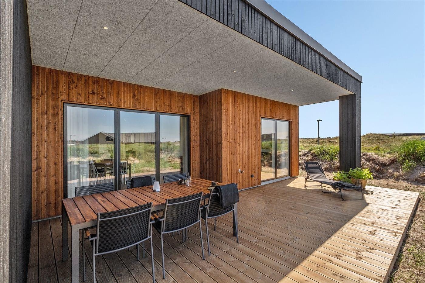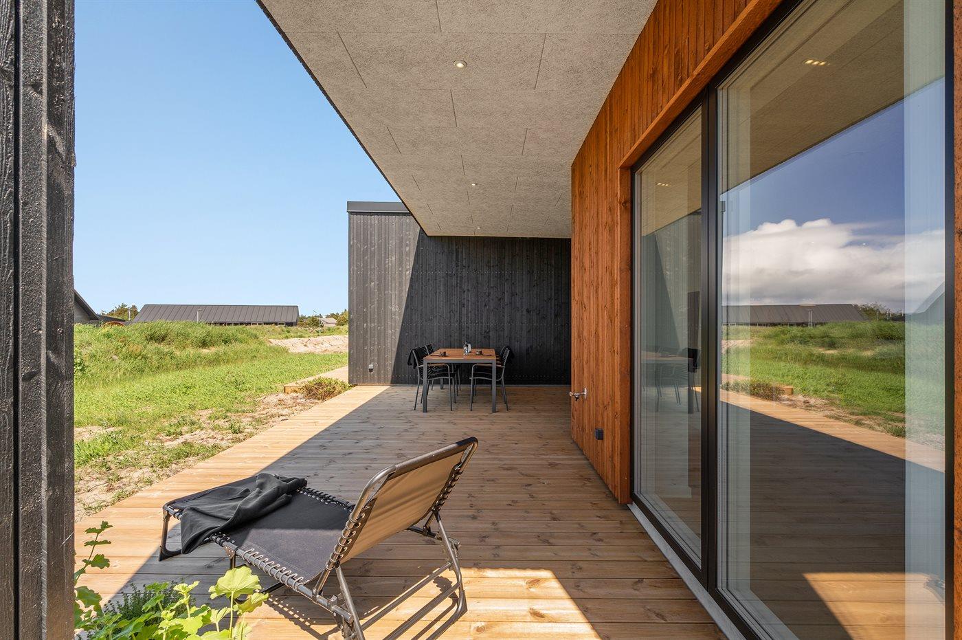 Moderne sommerhus fra 2022 i rolige omgivelser nær Nationalpark Thy med to terrasser og adgang til fitnesscenter.