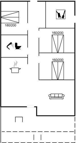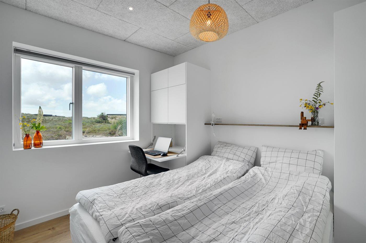 Huset har tre soveværelser. Sovepladserne fordeler sig på: 6 sovepladser i 3 dobbeltsenge. På to af værelserne er der indbyggede skriveborde i skabene, så du nemt kan kombinere ferie og hjemmearbejde. Til de mindste findes 1 rejseseng, 1 højstol, 1 juniorstol, puslepude, legetøj og plastikservice.