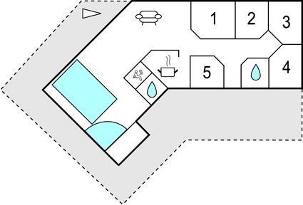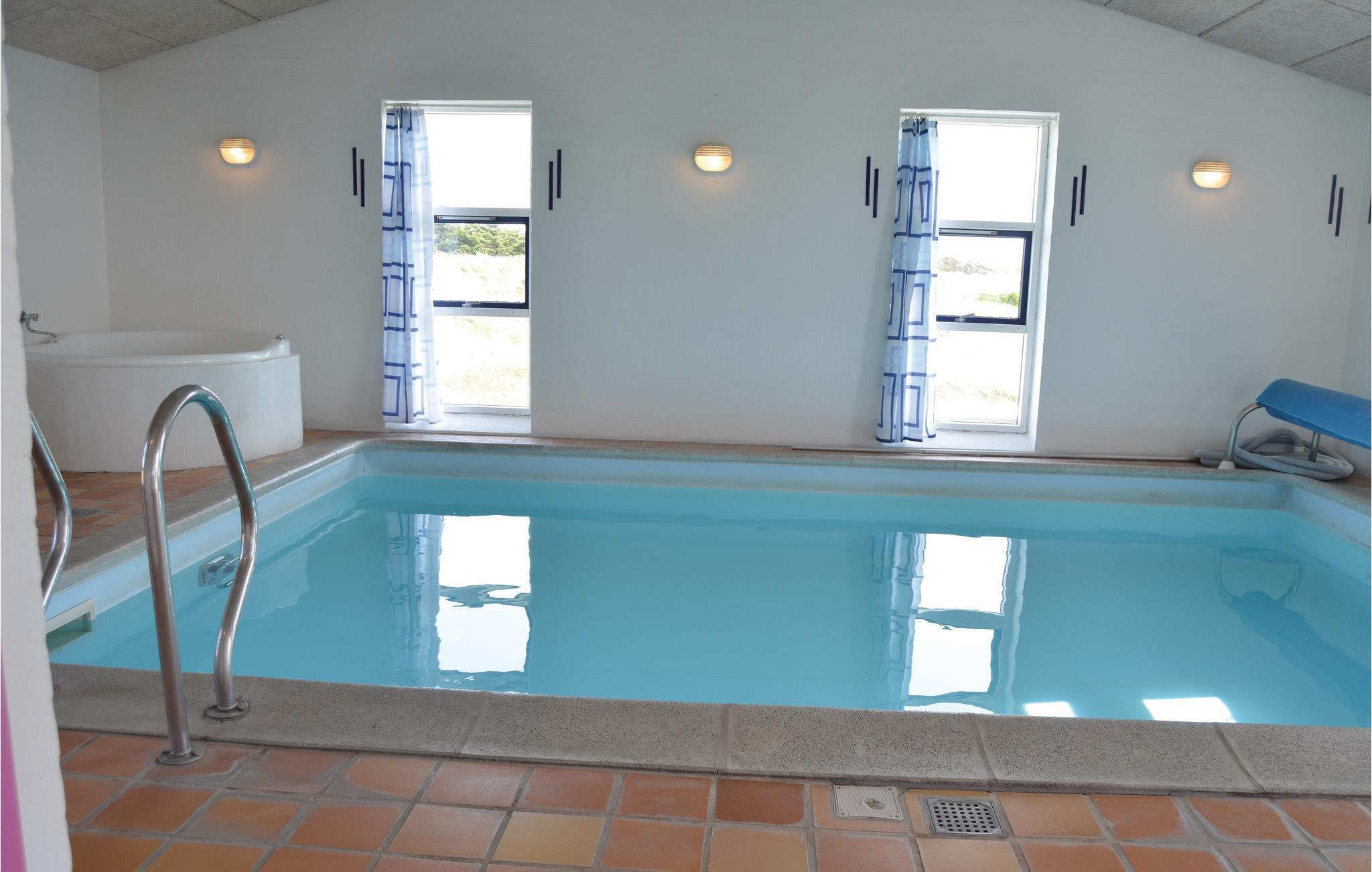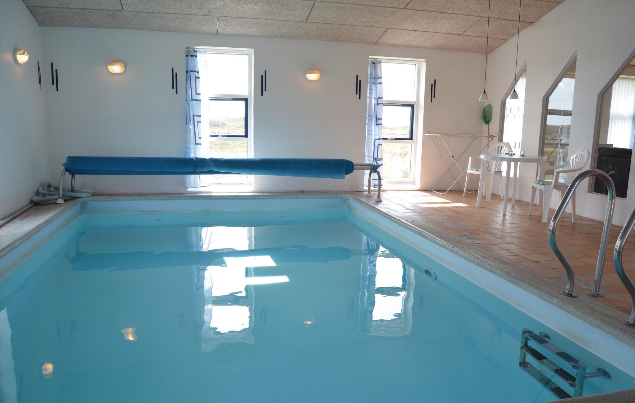I første klitrække, 300 meter fra stranden og med havudsigt, ligger dette dejlige feriehus på en 4.000 m² klitgrund. Feriehuset er opført i røde mursten og er 186 m². Indvendigt er der hvide vandskurede vægge og fyrretræsbeklædte lofter i både køkken og stue. Gulvene er belagt med teglklinker med gulvvarme, dog er der tæpper i de 5 soveværelser. Fra den store og velmøblerede opholdsstue er der adgang til både den store østvendte terrasse og poolrummet med den ca. 20 m² store swimmingpool, saunaen og spabadet til 2 personer. Hertil kommer 2 badeværelser med vaskemaskine og tørretumbler i det ene - i begge badeværelser er der naturligvis gulvvarme. På den kuperede grund er der rig mulighed for udfoldelse for alle aldre. Huset er meget velegnet til flere familier.