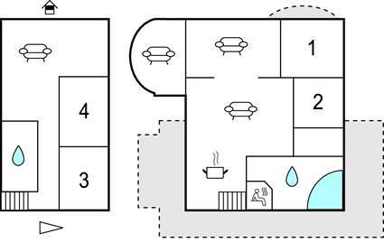 Det ligger på en skøn klitgrund med høje nåletræer. Fra 1. sal, hvor der er stue, tekøkken og bad samt to soveværelser, har I udsigt over klittoppene. Huset har en stor dagligstue med udgang til en dejlig, sydvendt terrasse og desuden adgang til en skøn havestue. I det flotte badeværelse lokker det boblende spabad og ved siden af, saunaen. Et rigtig dejligt feriehus - også for to familier!