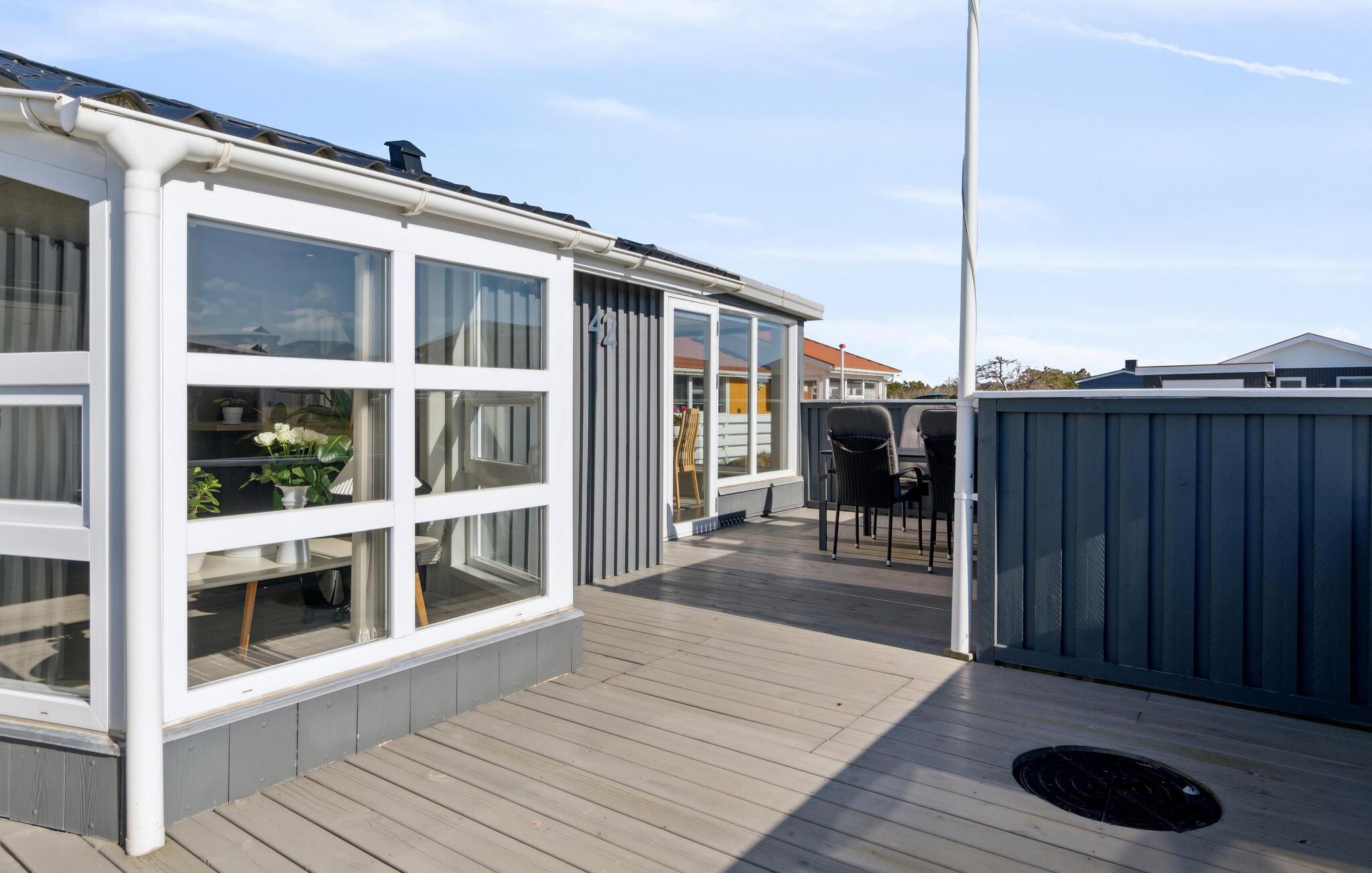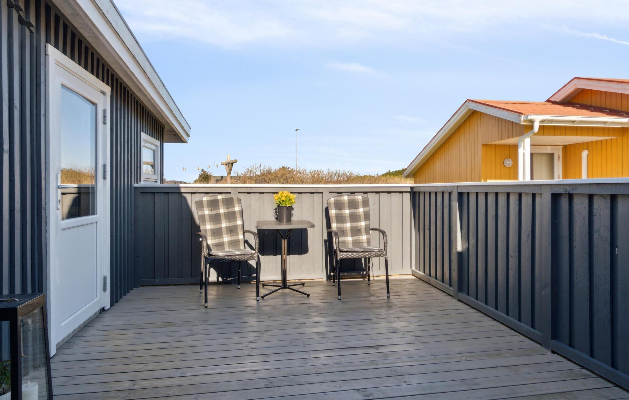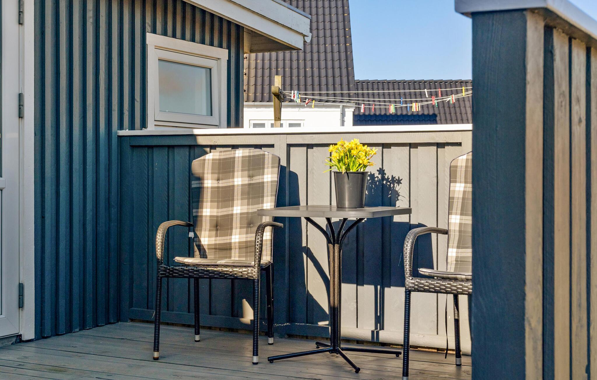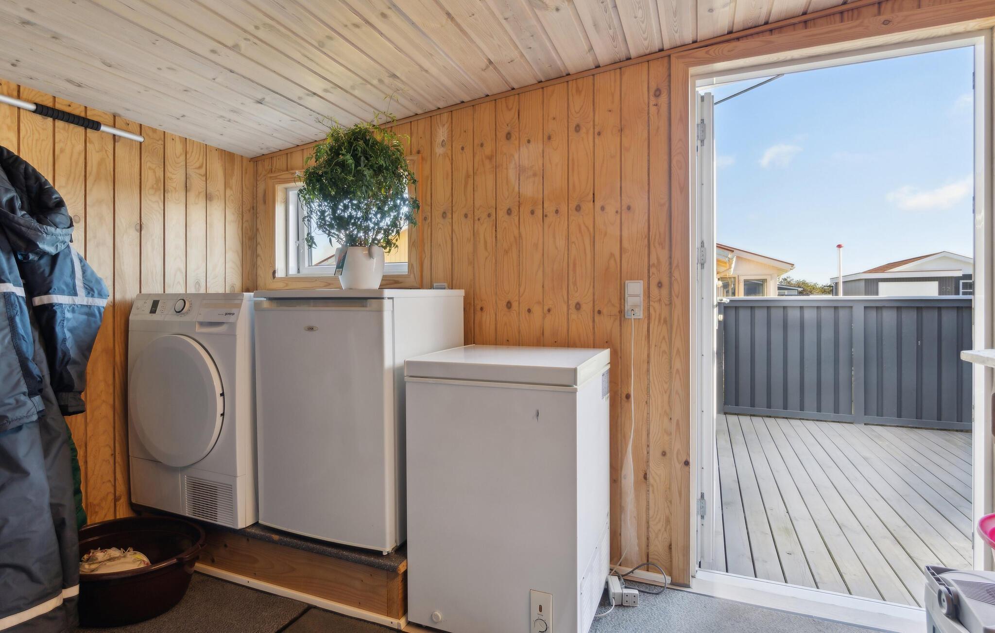 Træd ud på terrassen og tilbring afslappende timer udendørs. Tag plads i det overdækkede udendørsområde og nyd en kop kaffe på solrige dage. Det er også herligt at sætte sig til rette med en god bog og mærke den friske brise fra Vesterhavet.